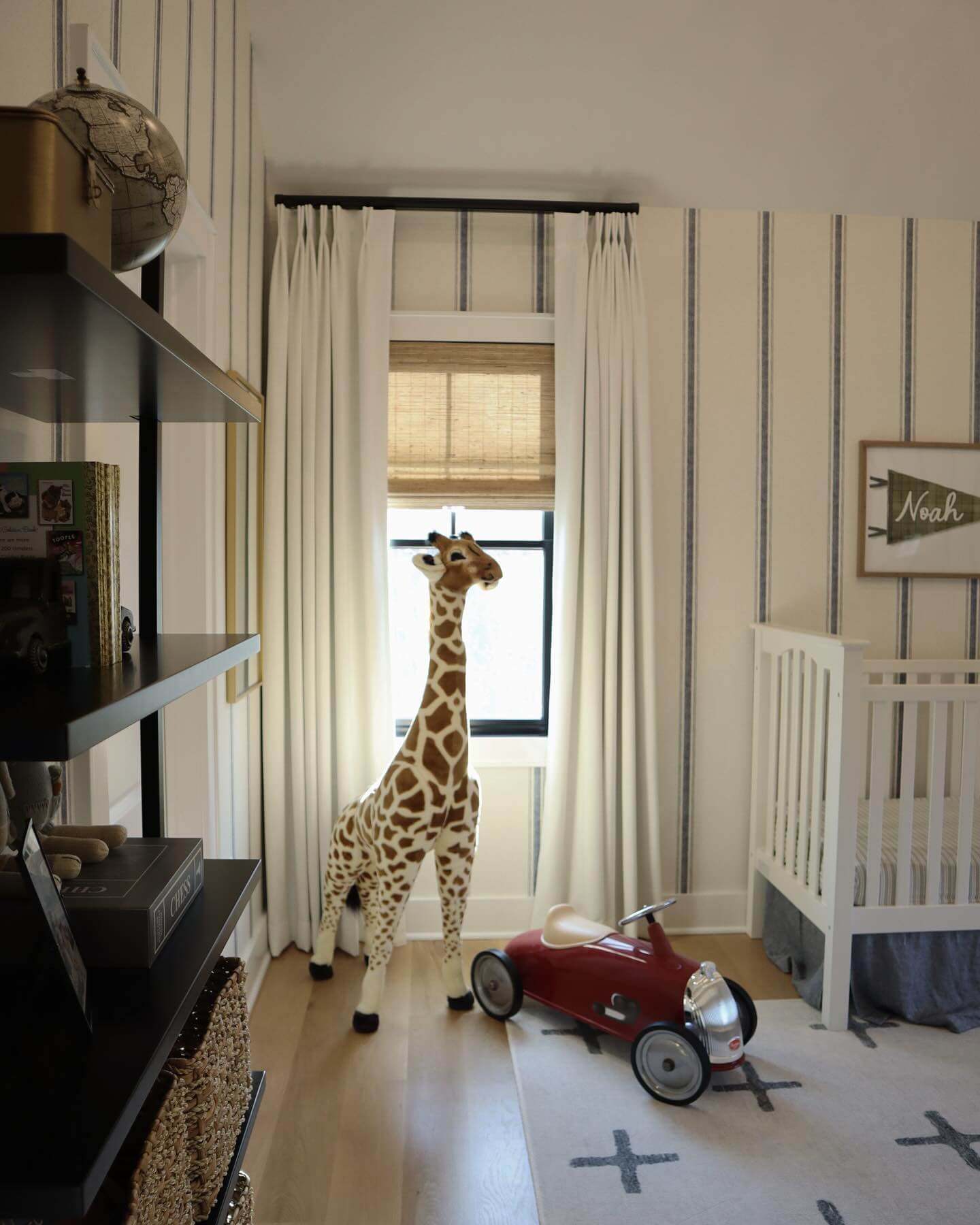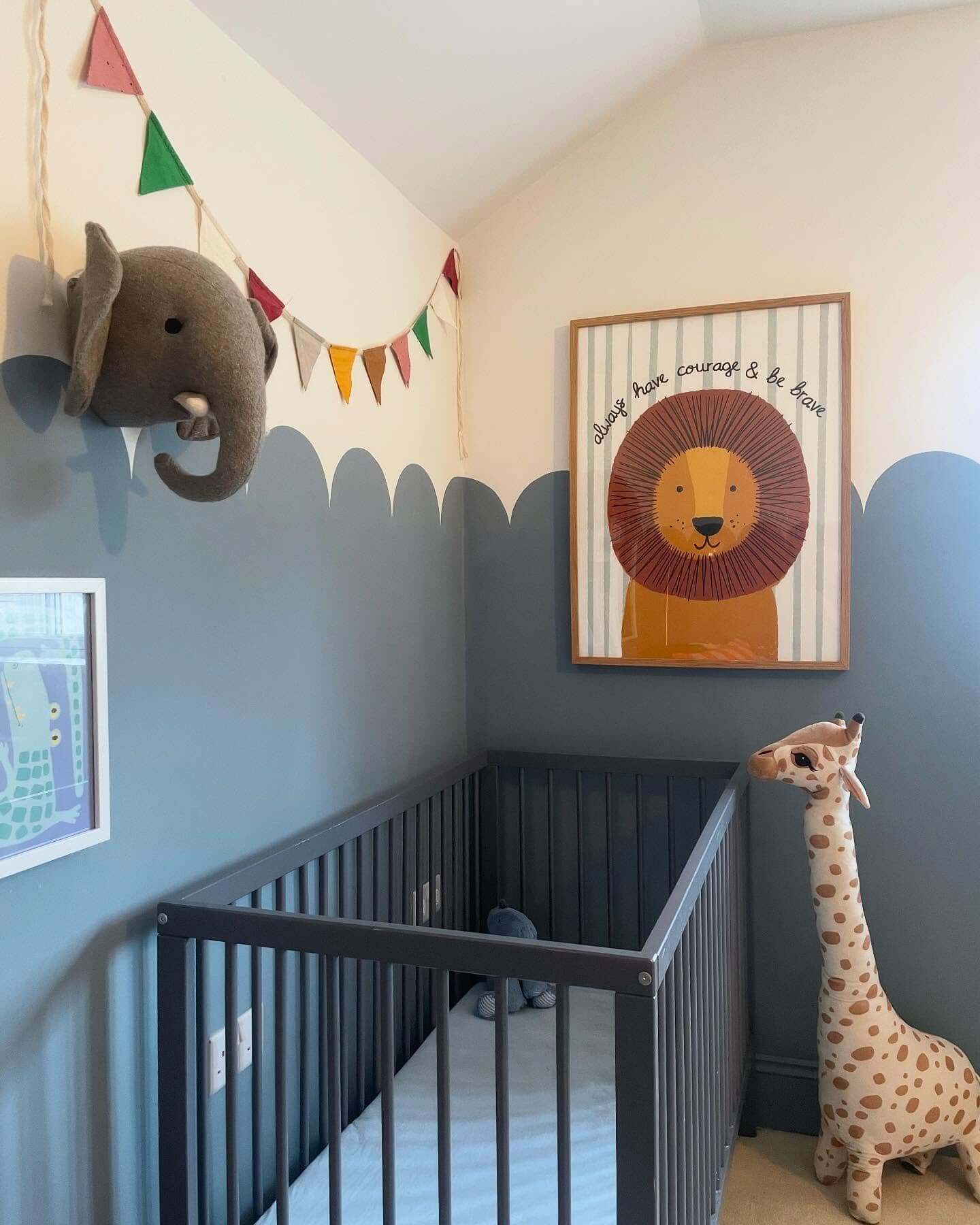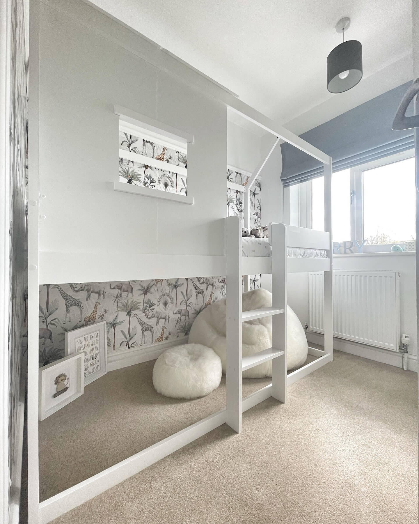 • Create a safari-to-explorer theme with neutral walls, animal art, and framed maps that transition from toddler curiosity to school-age geography projects without repainting or replacing major furniture pieces.