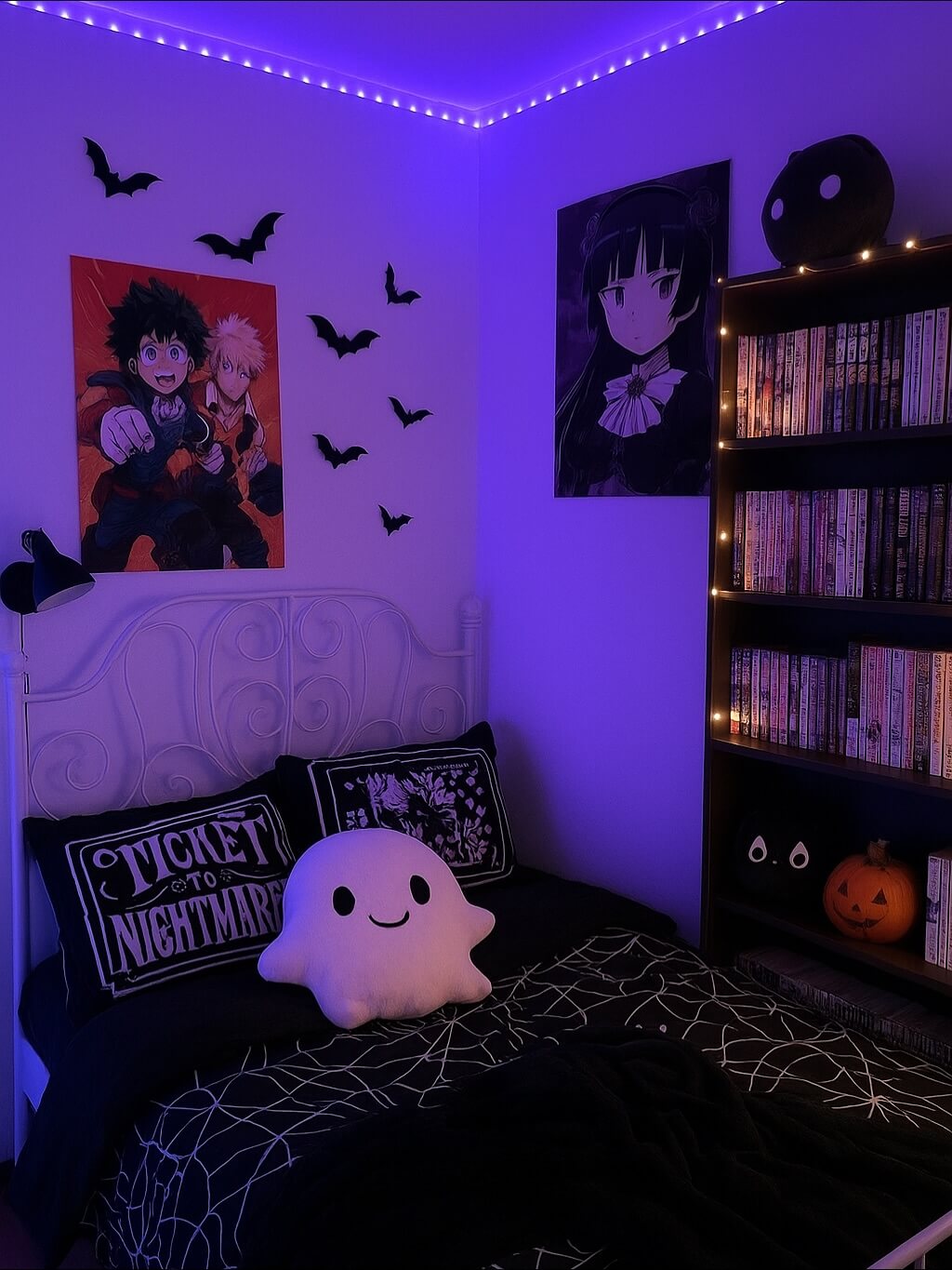 - Villain Arc Dark Glam: Burgundy, ink, and gunmetal; velvet bedding, chrome details, and mirror-finish posters deliver dramatic depth without sacrificing coziness or binge-watching readability.