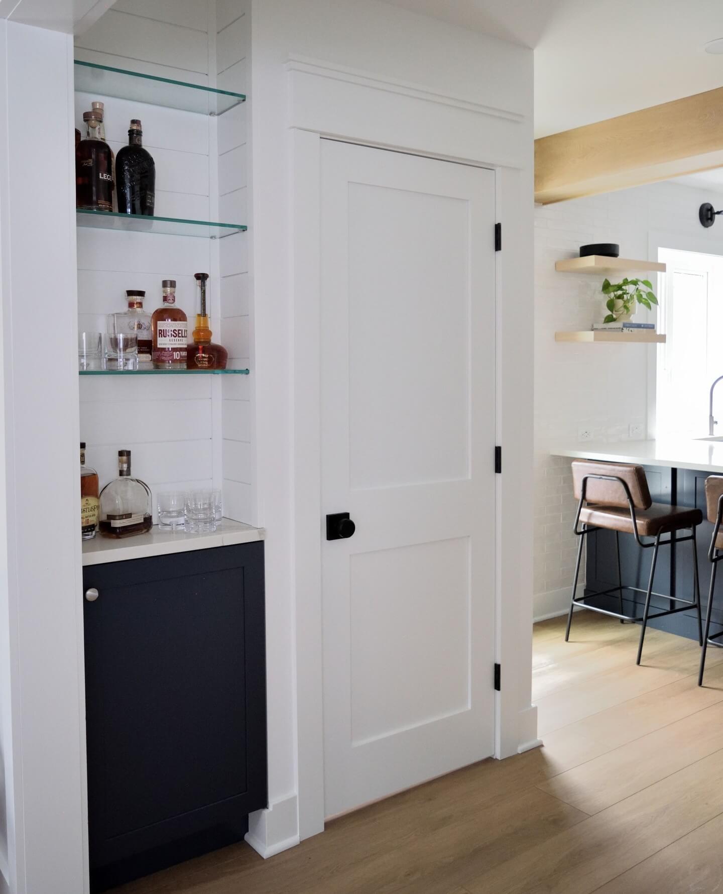 This bar nook style is ideal for compact spaces or homeowners who prefer a simple, uncluttered aesthetic. It highlights the ability to design with intention, creating a space that feels both expansive and intimate, perfect for any modern home.
