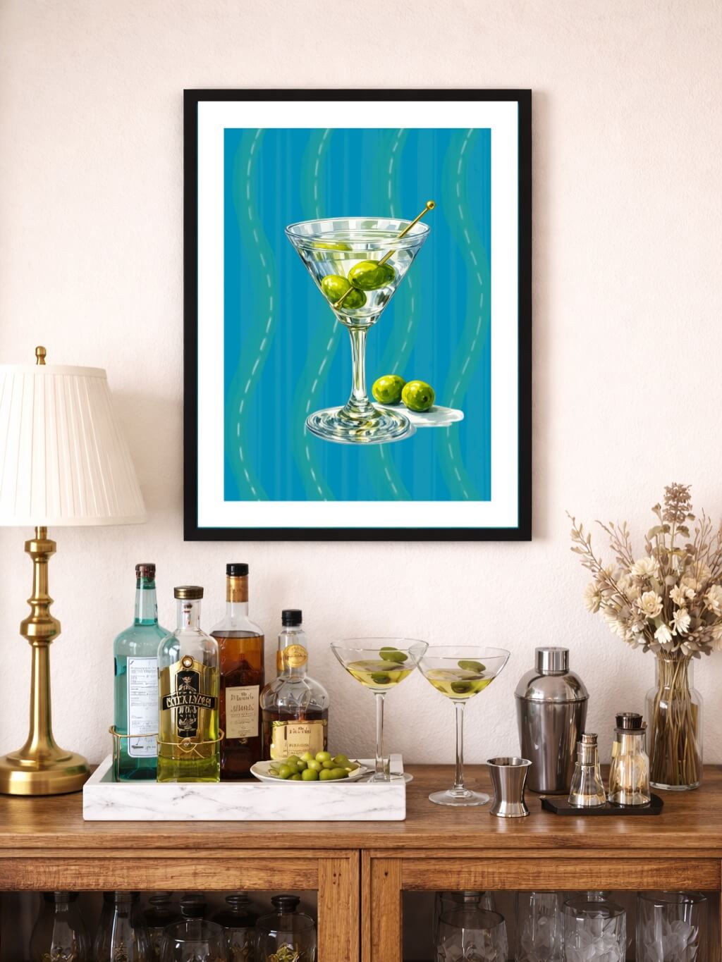 Adopting a minimalist approach can lead to striking results, as evidenced by this chic bar nook. The setup embodies simplicity with clean lines and a thoughtful selection of bar essentials, ensuring functionality is met with elegance.