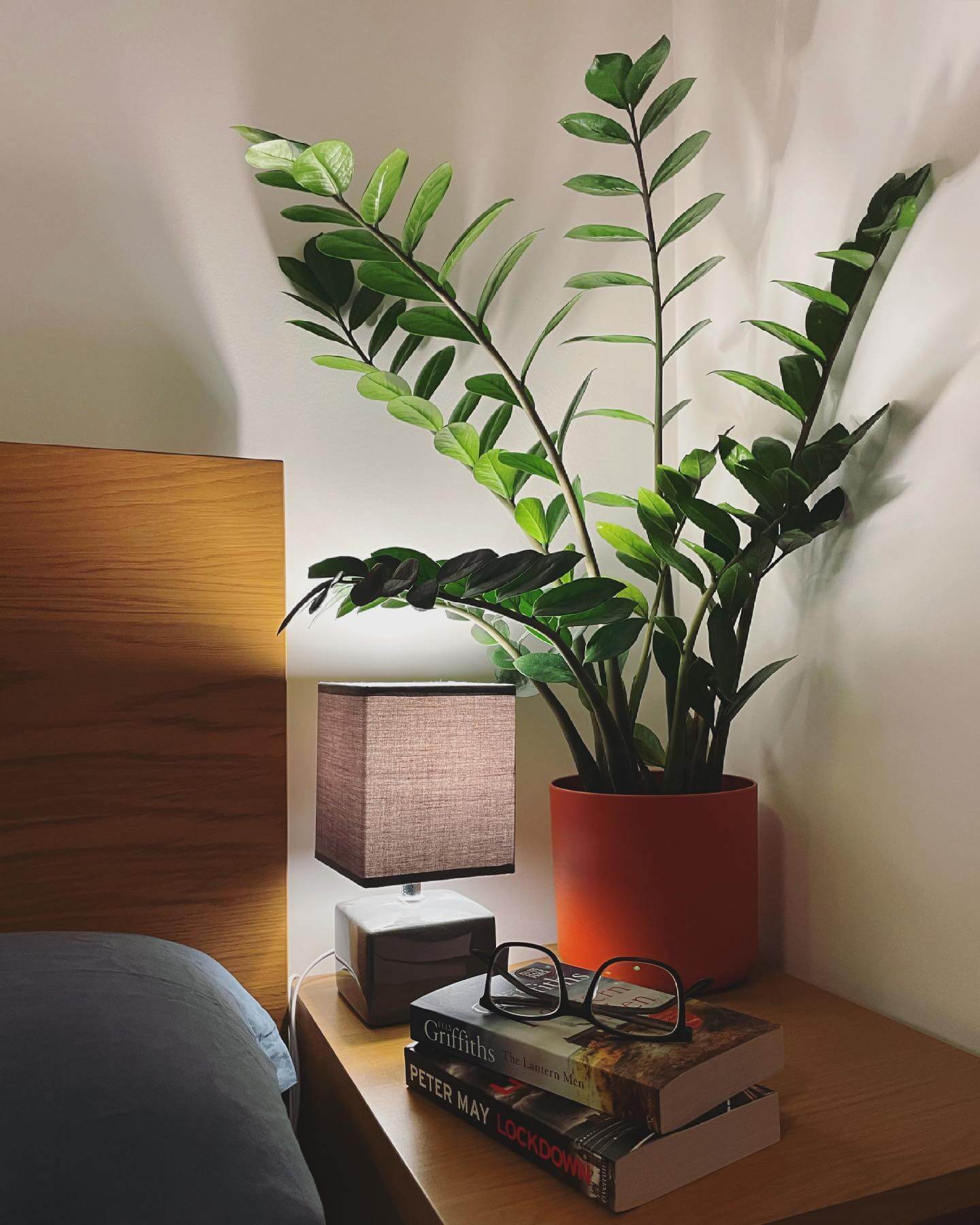 - ZZ Plant (Zamioculcas): Glossy, drought-tolerant fronds thrive in dim bedrooms, handling erratic care while lending sculptural volume on dressers, shelves, or floor stands without demanding frequent repotting.