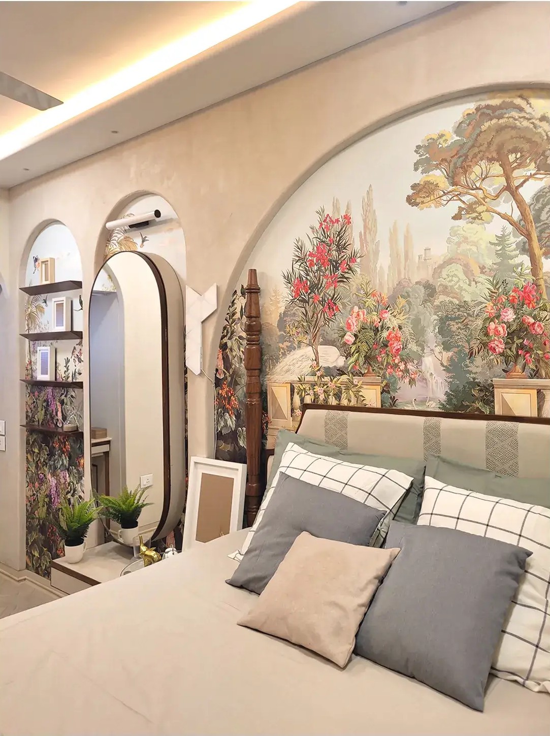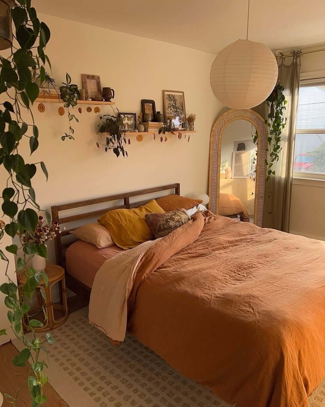 - Floating Corner Shelves: Exploit dead corners with minimal shelves that hold petite plants, candles, and books, forming a calming vignette that draws the eye upward without crowding nightstands.
