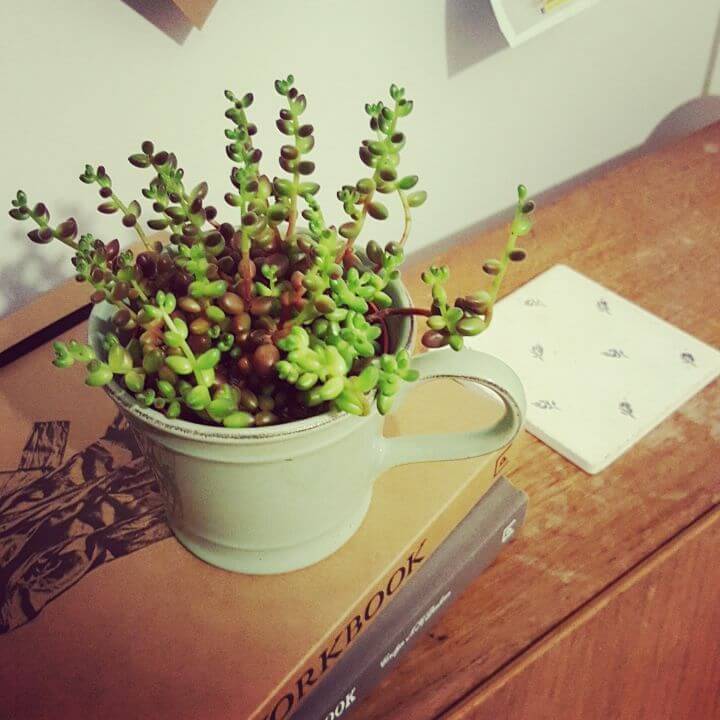 Trailing plants instantly relax hard edges and make small bedrooms feel layered. Pothos, heartleaf philodendron, and string of hearts spill from shelves or ceiling hooks, drawing the eye upward and creating that boutique-hotel drape of green. Use them to soften bookshelves, frame a mirror, or lead the gaze toward a window. Keep the palette cohesive: one trailing species in multiples looks curated; mixed textures (velvety philodendron + glossy pothos) add contrast if your bedding is neutral. Ensure bright, indirect light for full vines, and pinch tips to encourage bushier growth. Water when the top inch of soil is dry; let excess drain to protect wood furniture. For rental-friendly installs, try tension-rod hanging planters or command hooks above dressers. If you need pet-safe options, swap in peperomia hope or trailing hoya varieties placed out of reach. A single, generous cascade can transform a plain wall into a restful focal point—no paint required.