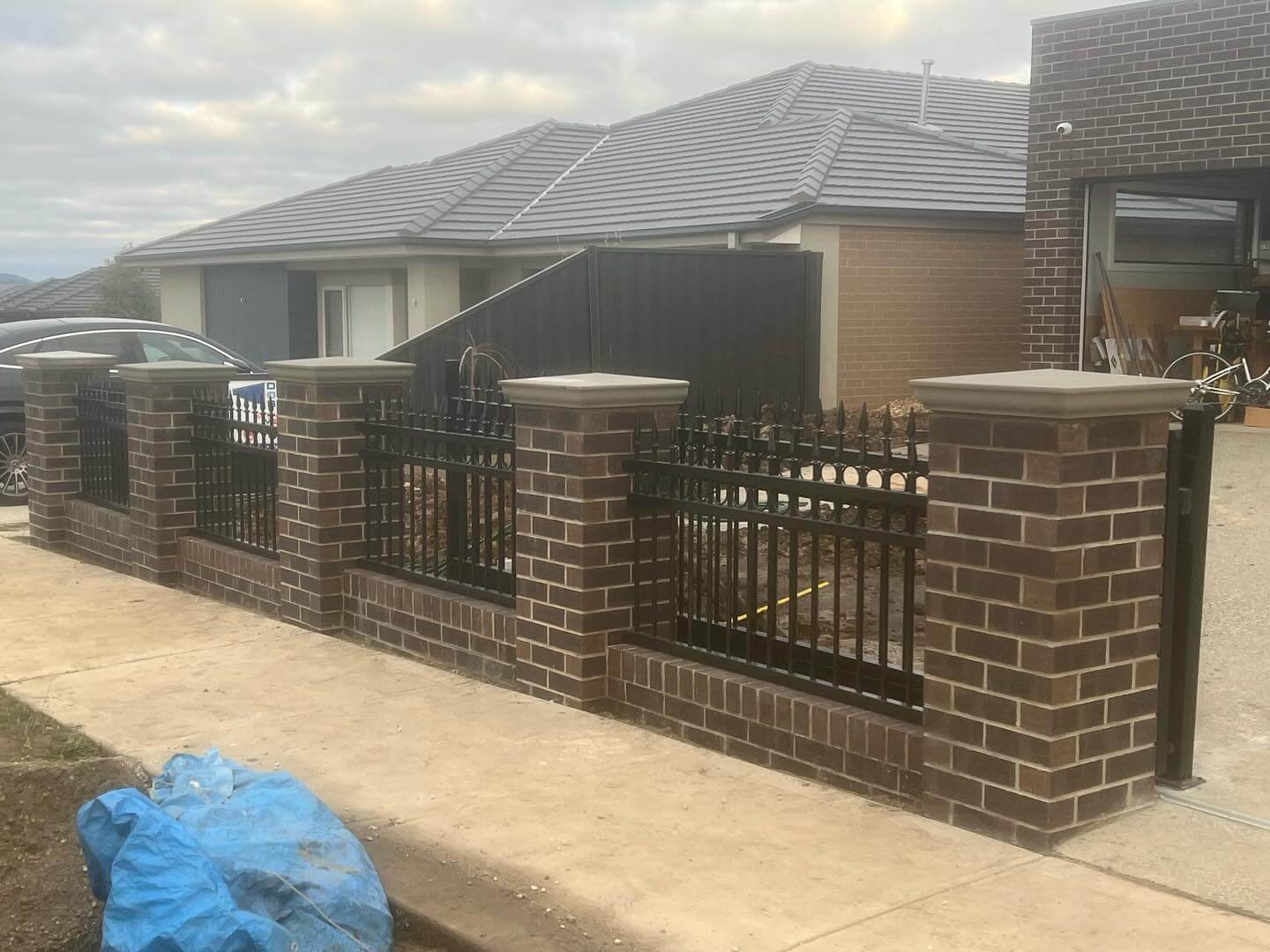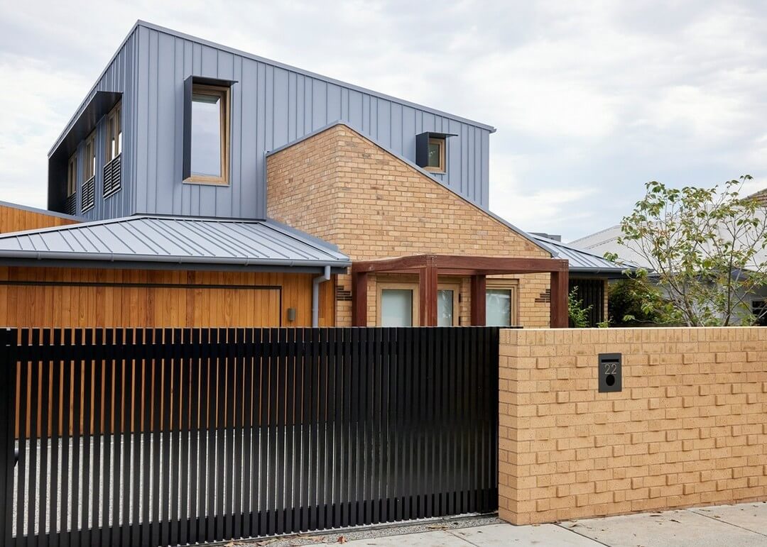 - Use low brick plinth walls topped with vertical metal pickets to keep sightlines open, achieving security without heaviness, especially effective on narrow urban frontage lots.