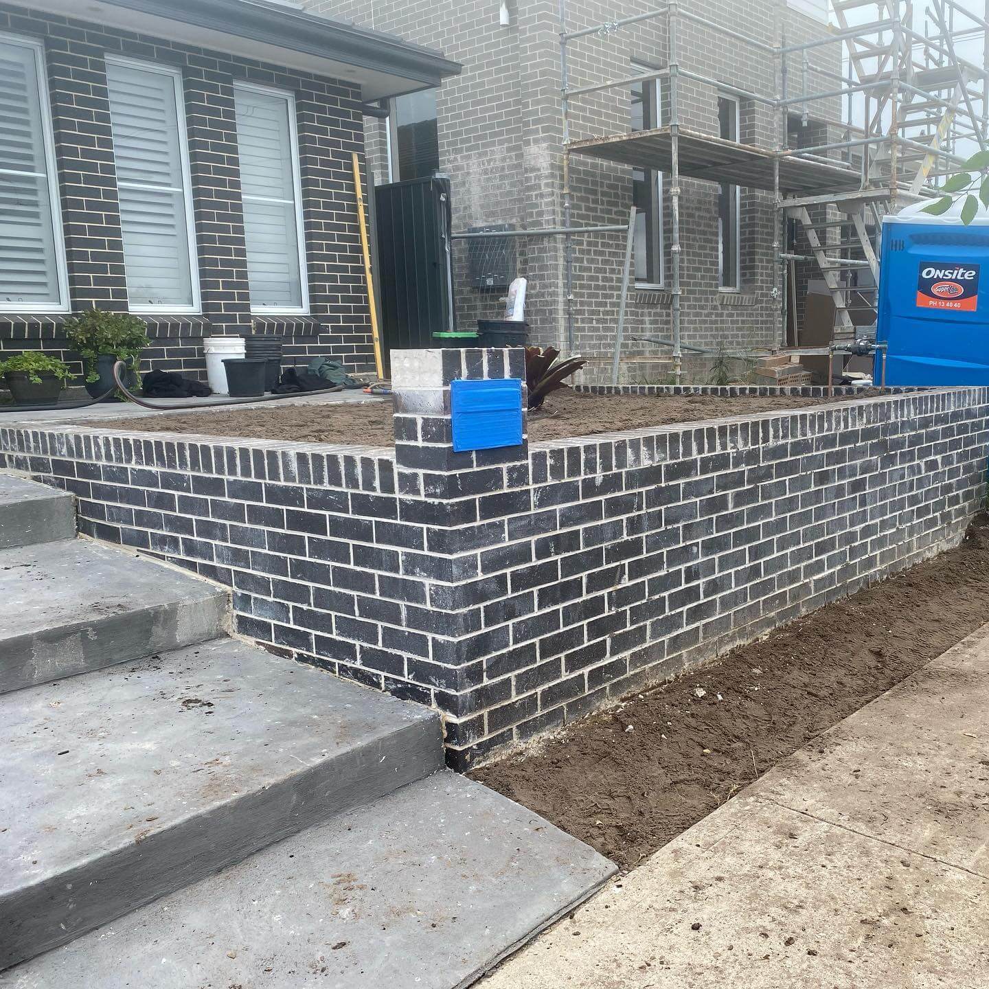 Build the planter as a reinforced concrete box with waterproofing on the soil side, weep outlets, and free-draining, lightweight soil. Veneer with brick that matches your fence, then top with a smooth stone or brick cap eased at the edge for comfort. On slopes, terrace the seat walls in short runs that step with grade; at corners, wrap the seating to form cozy nooks.
