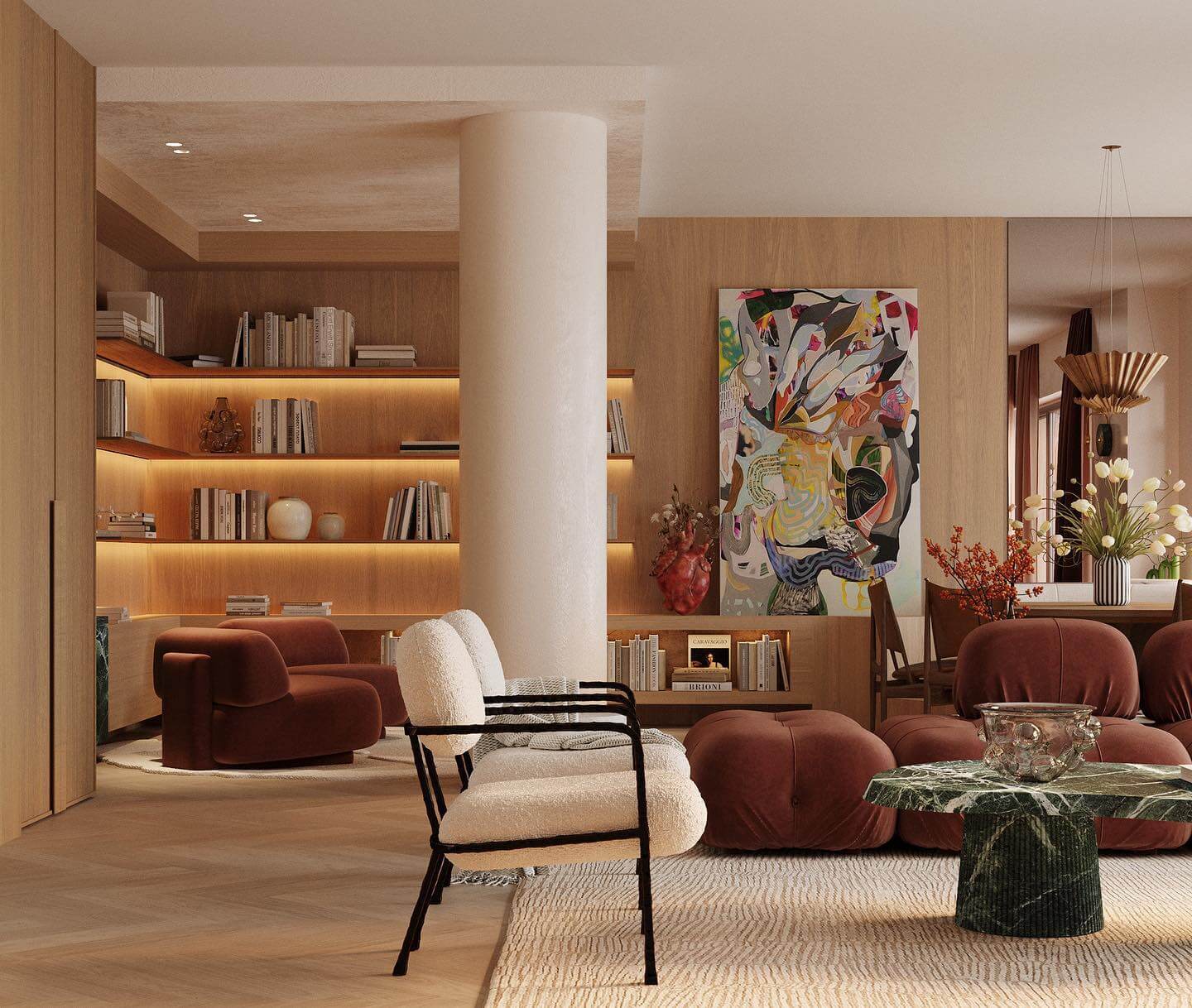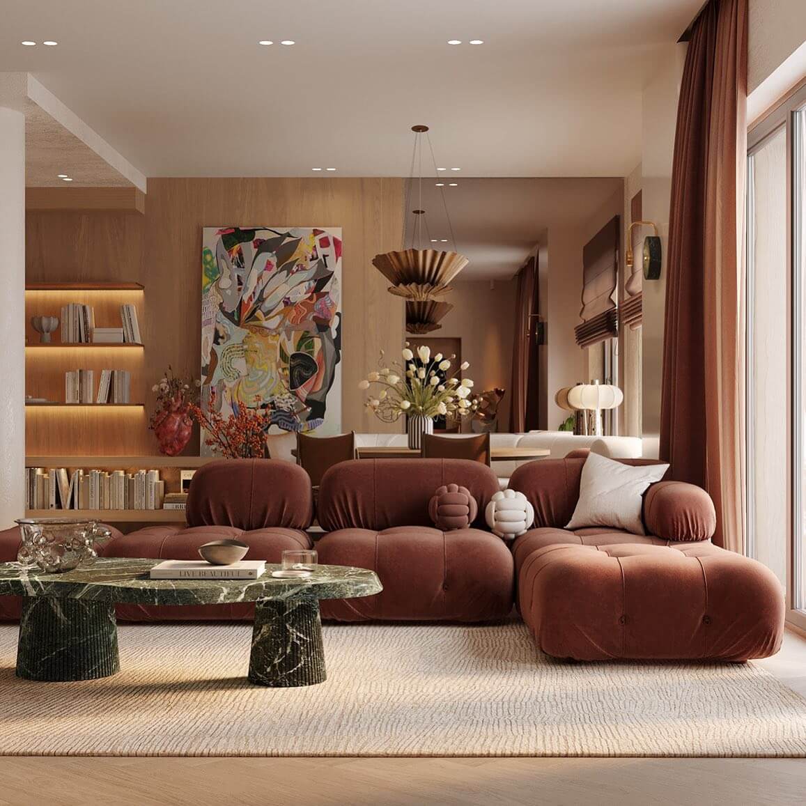 - Painted Ceiling Surprise: Paint the ceiling a muted terracotta or deep teal, echoing the shade in lamp bases and textiles, creating enveloping warmth that photographs beautifully and makes tall walls feel intentional.