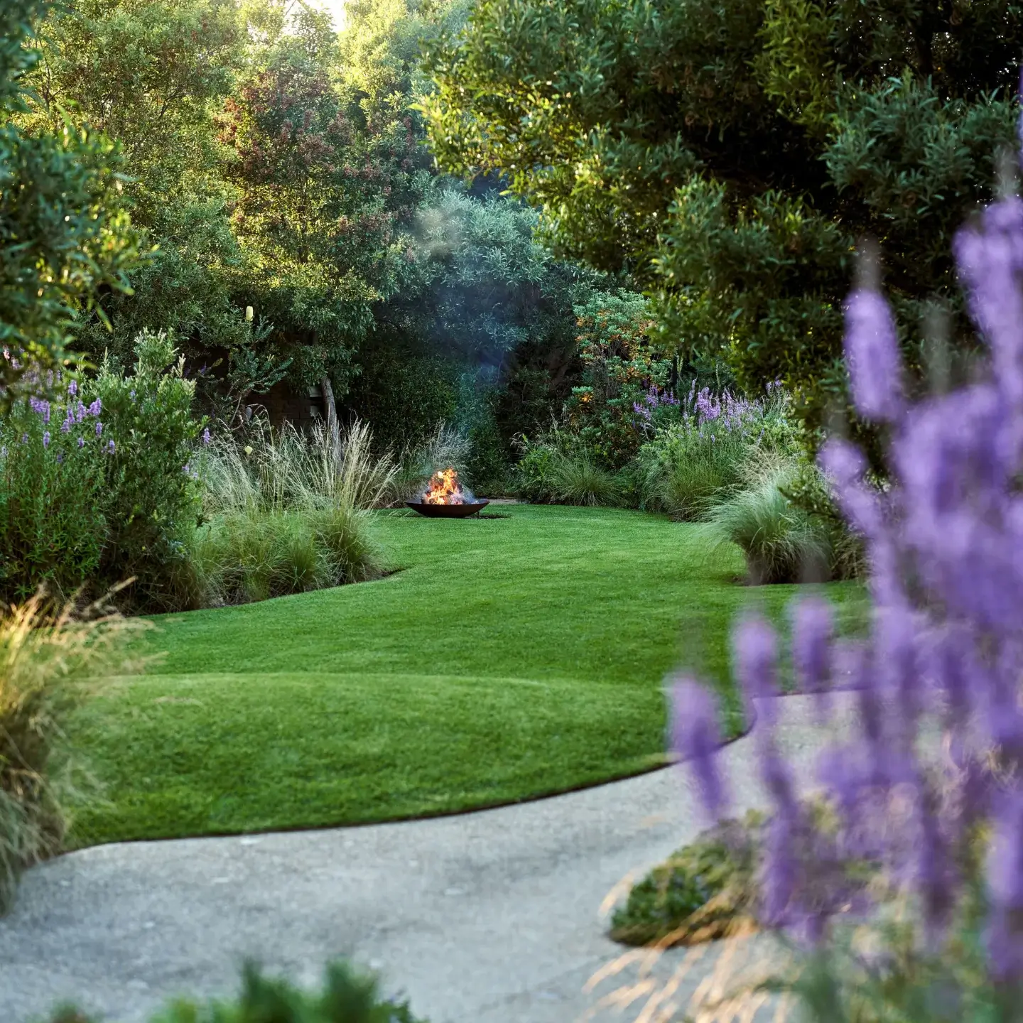 Courtyard Comfort: Fire Bowl Focus on a Gravel Carpet