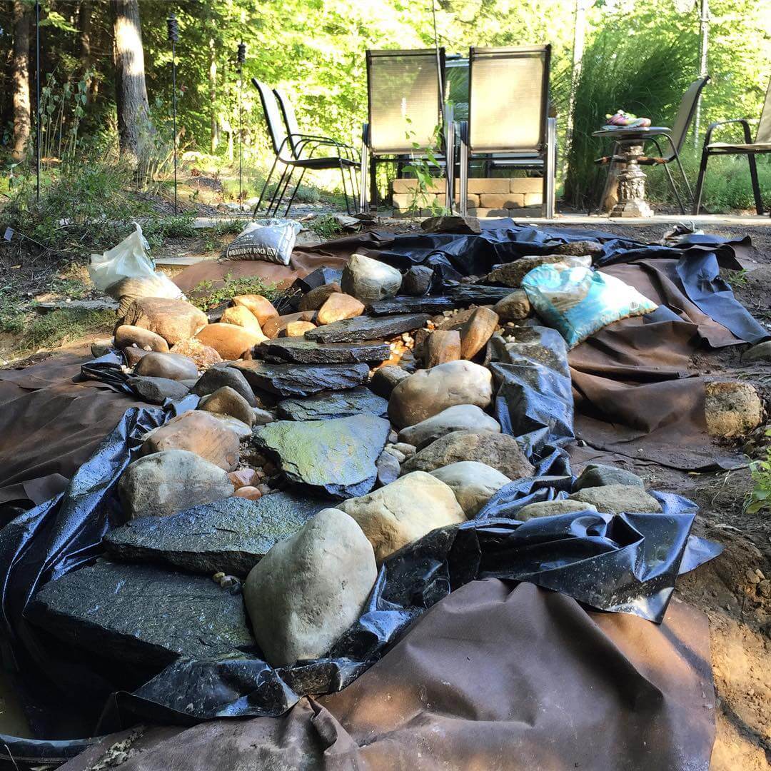 No-Dig Above-Ground Pond with Retaining Blocks and EPDM Liner