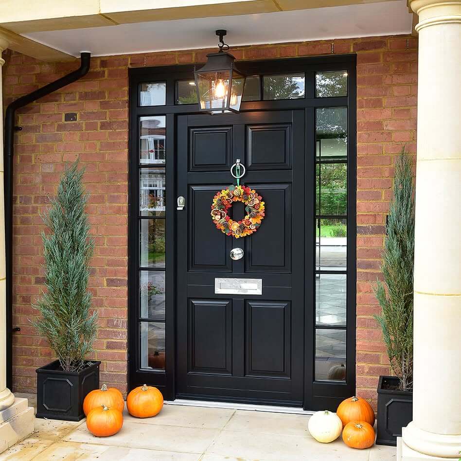 If you want a color that works on nearly every facade, black is the sure bet. A saturated, inky front door grounds a home visually and instantly elevates curb appeal, whether your exterior is white clapboard, red brick, stone, or modern stucco. Black’s low light reflectance makes trim and hardware pop, so it’s a strategic choice when you want to showcase brass, polished nickel, or matte black levers. For balance, echo the tone in light fixtures, house numbers, or a metal mailbox so the entry reads cohesive rather than stark. In sunnier exposures, consider a soft-black with a hint of charcoal to avoid heat buildup; in shade, a true jet black reads crisp and luxe. Semi-gloss or gloss sheens are durable, wipeable, and add a subtle lacquered finish that telegraphs quality. Pair with bright white or creamy trim for classic contrast, or with taupe for a softer, European look. Testing swatches at different times of day matters—warm afternoon light can reveal brown undertones, while morning shade cools the color. The result: a sophisticated, timeless entry that frames seasonal wreaths, potted greens, and everyday life with effortless style.