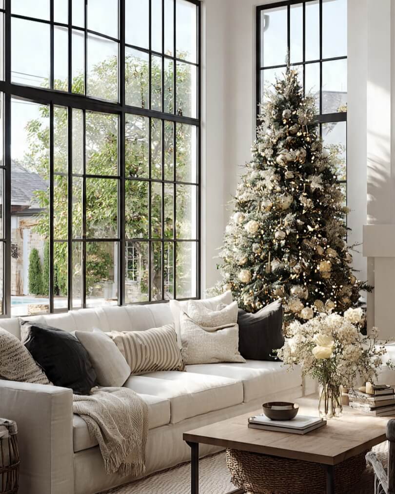 Modern farmhouse living room ideas balance crisp silhouettes with the warmth of handcrafted texture, ensuring the space reads fresh, not fussy. Start with a restrained base—soft white walls, charcoal accents, and black window grids—so wood tones and textiles become intentional highlights. Choose furniture with clean profiles, taller legs, and light visual weight to reveal more floor and feel spacious. Float seating off walls to create conversation zones, using a large area rug to unify pieces without crowding pathways. Introduce contrast through matte black hardware, galvanized accents in moderation, and streamlined plaid or ticking-stripe patterns. Prioritize storage that closes—doors, drawers, and lidded baskets—so daily life disappears and the architecture takes center stage.