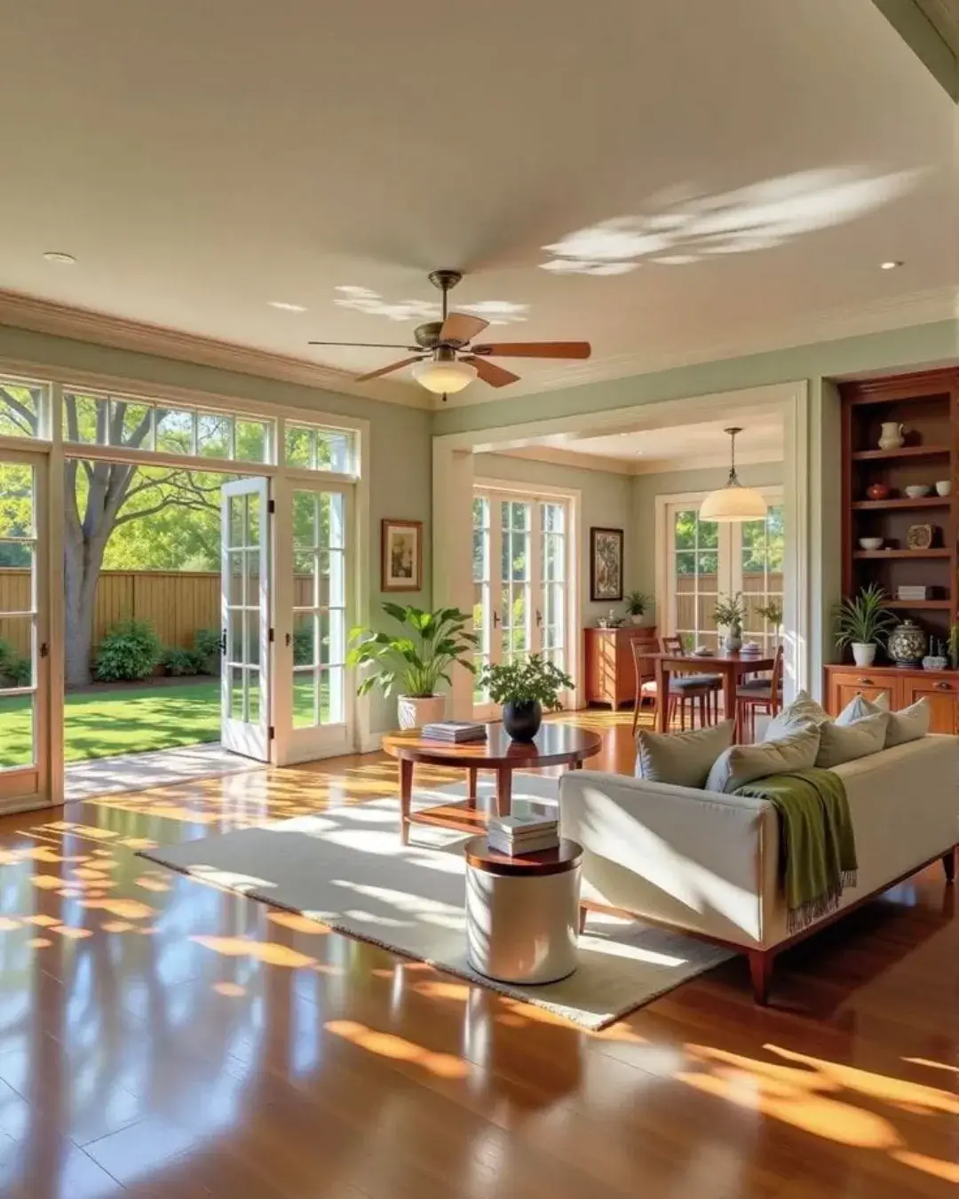 Every cozy farmhouse living room starts with a calm, collected color story. Build yours around soft whites, warm greige, mushroom taupe, and oat—hues that flatter natural light and make wood tones sing. The trick is to layer temperature and texture: pair a warm white on walls with creamy linen upholstery, then ground it with mid-tone woods and a few inky accents for contrast. If your space is open plan, keep one neutral running through all zones to create flow, then introduce depth with stone, woven rattan, jute, and vintage pottery. Test paint undertones at different times of day and choose a matte or eggshell finish for a velvety, farmhouse-friendly look. To avoid flatness, weave in subtle patterns—ticking stripes, petite checks, or a faded rug—and repeat them in small doses. A restrained, layered palette becomes the backdrop that lets patina, greenery, and collected finds shine. Once your neutrals are dialed in, it’s easy to swap seasonal accents without derailing the vibe—a hallmark of timeless farmhouse living room decor ideas that last.
