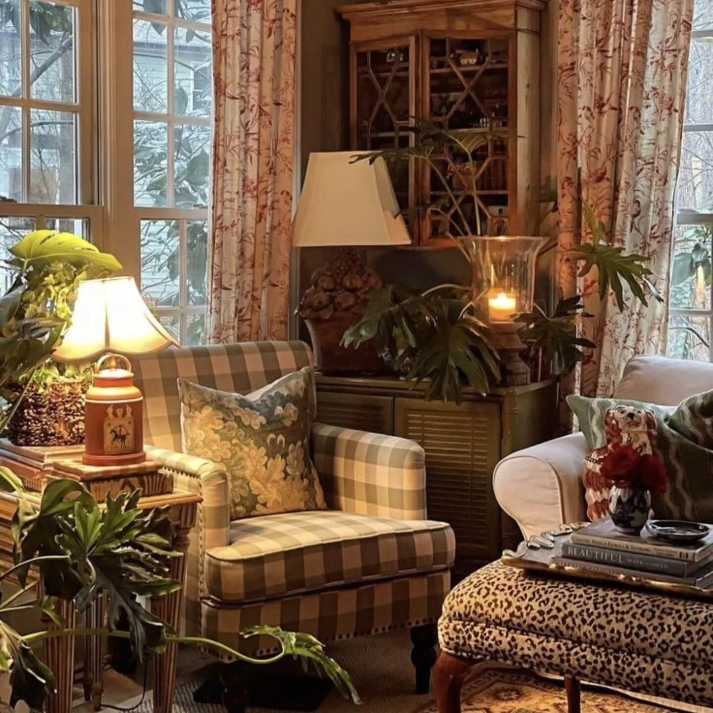 Pattern in a farmhouse living room should feel timeless, not trendy. Start with a quiet base—neutral slipcover, jute rug, limewashed walls—then add small-scale classics: ticking stripes on pillows, a gingham throw, or a subtle windowpane on an accent chair. Vary the scale (small stripe, medium check, larger plaid) within a tight palette of oatmeal, charcoal, denim blue, and muted sage so the room reads cohesive, not busy. Repeat each color at least twice—on drapery trim, artwork mats, or book spines—to knit the look together. If you’re mixing florals, keep them vintage and low-contrast so they hum in the background. These heritage patterns bring comfort, movement, and a sense of place, all while staying camera-friendly and easy to refresh seasonally.