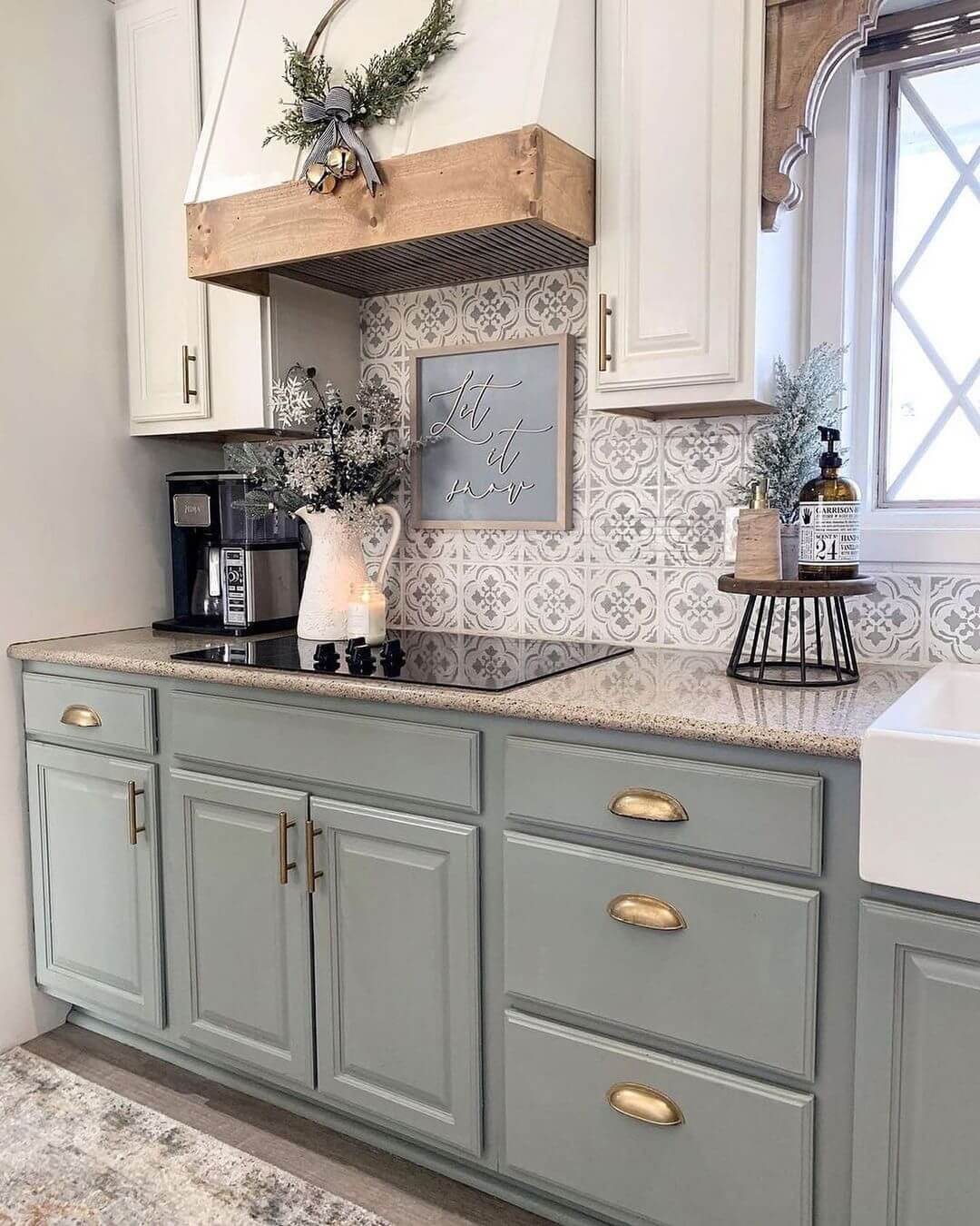 Updated farmhouse leans warm and desaturated: creamy whites, soft greige, mushroom, and putty, with accents of black, rust, or olive. Use wood tones as a “color” to add depth naturally.