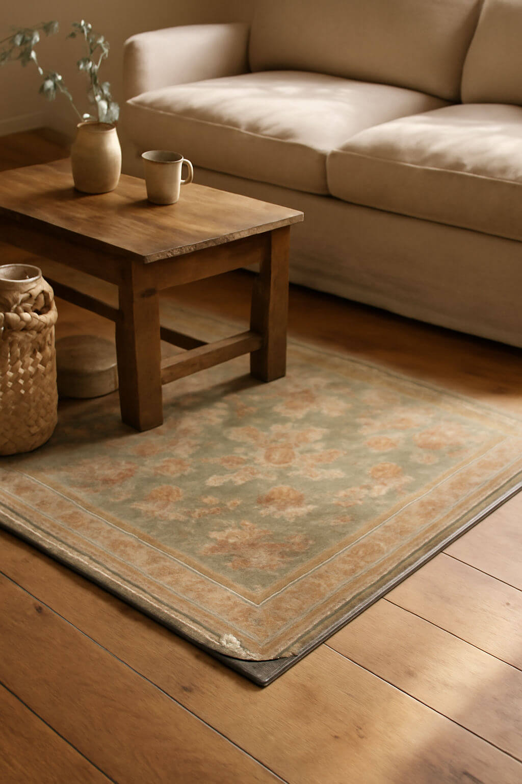 - Measure door swing clearance meticulously; low-profile rugs and thin pads keep thresholds smooth, eliminating tripping hazards and preventing corners from curling where traffic turns sharply into adjacent rooms.