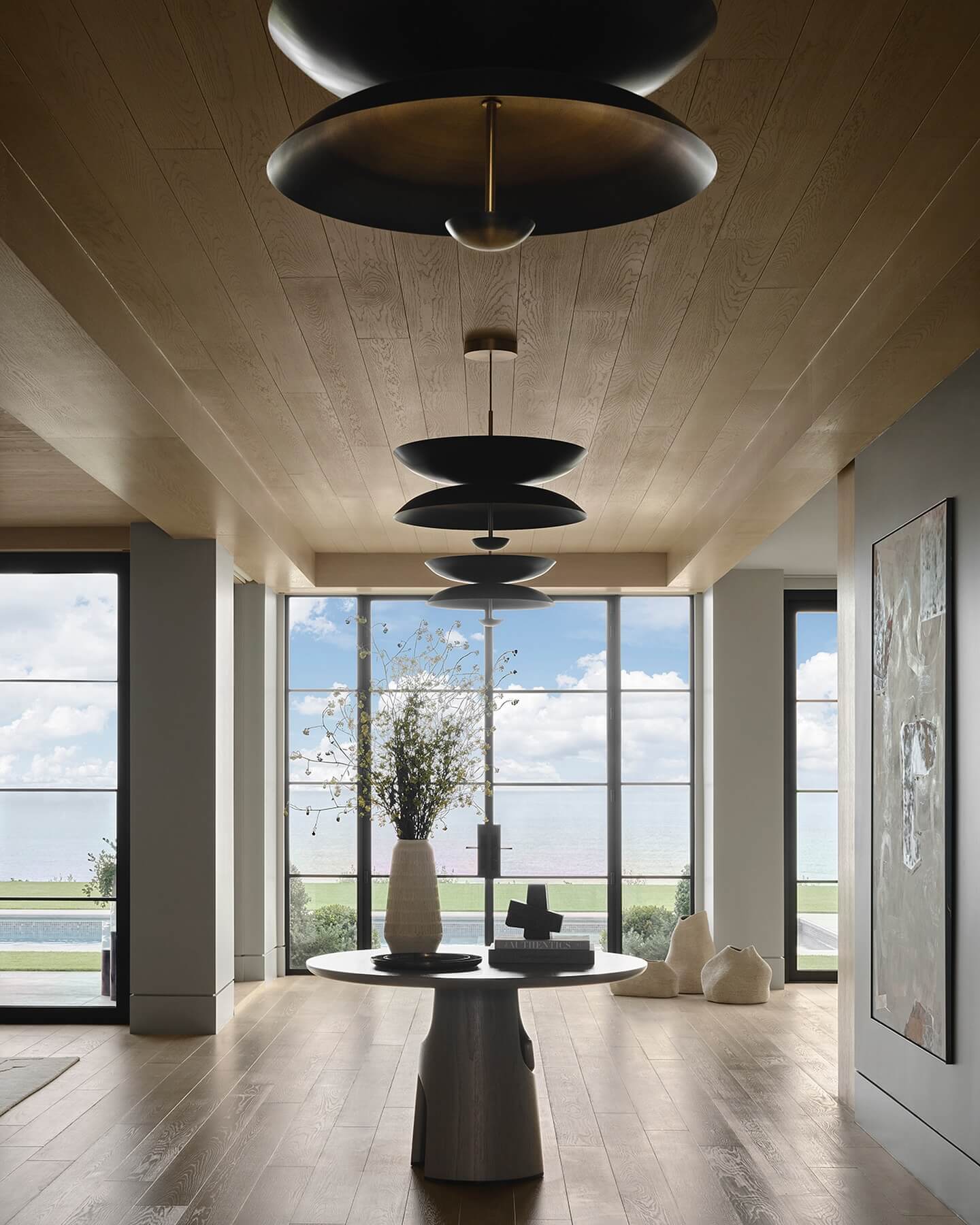 Don’t overlook the ceiling above your front door—it’s a powerful yet budget-friendly surface that can transform the entire entryway. Painting a porch ceiling a light tone (classic haint blue, a soft ivory, or a whisper gray) bounces illumination downward, making the entry brighter and more welcoming day or night. If you crave warmth, clad the ceiling with tongue-and-groove cedar or beadboard and finish with a matte marine-grade sealant for depth and durability. Visually frame light fixtures with a simple ceiling medallion or painted “halo” to elevate even basic pendants. For taller porches, a deeper hue can cozy up the volume; for low ceilings, keep it light to lift the space. Finish the edges with crisp crown or bead moulding that ties into your door surround. This one move unifies lighting, trim, and color—turning the ceiling into a quiet design statement that heightens curb appeal every time you look up.