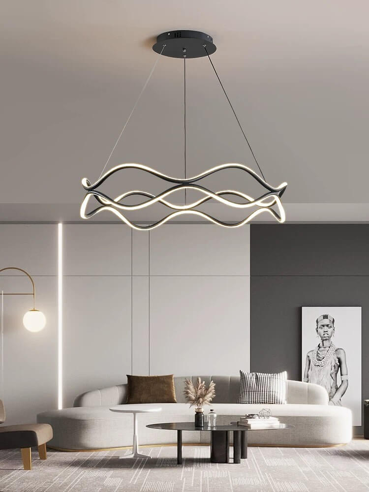 - Float a linear chandelier above the coffee table, centered on seating, and pair it with wall washers to lift drapery texture and artwork without hot spots or harsh contrast.
