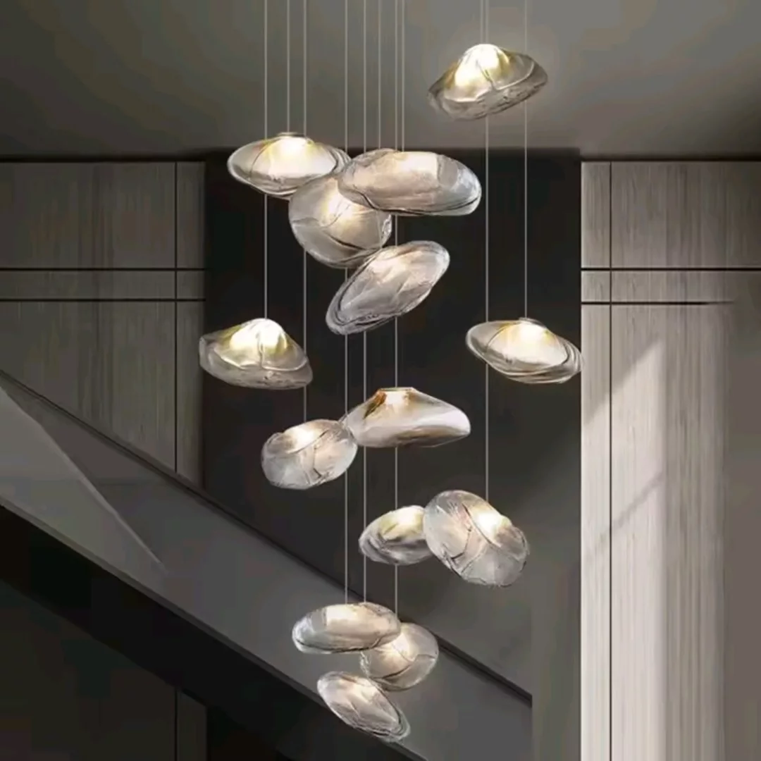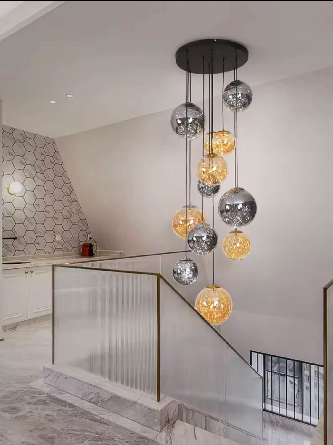Stairwells are prime real estate for statement ceiling lighting. A cascading multi-light pendant brings vertical rhythm to tall voids, guiding the eye upward and pulling your home’s story together from floor to floor. Start with scale: for double-height spaces, cluster 5–9 small pendants or 3–5 medium ones at staggered drops, letting the lowest hang at least 7 feet above the highest tread. Clear glass maximizes brightness; opal or smoked shades limit glare for nighttime comfort. If your stairs have landings, mirror their geometry—denser clusters over landings, lighter drops in open runs. Put the chandelier on a dimmer and pair with low-level step lights for layered safety after dark. Warm white (2700K) flatters wood treads and handrails; higher CRI keeps paint and artwork vivid along the ascent. Ensure the junction box is securely braced—multi-light canopies carry weight—and consider an accessible canopy or modular system for easy bulb swaps. The result: an illuminated spine that feels sculptural by day, ambient and inviting at night, and perfectly in step with your home’s design.