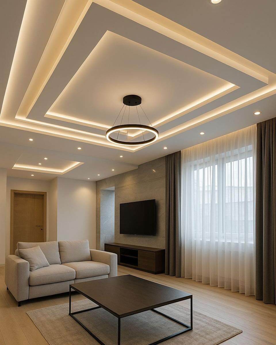 Layered Home Ceiling Lights Ideas for Living Rooms and Open-Plan Spaces