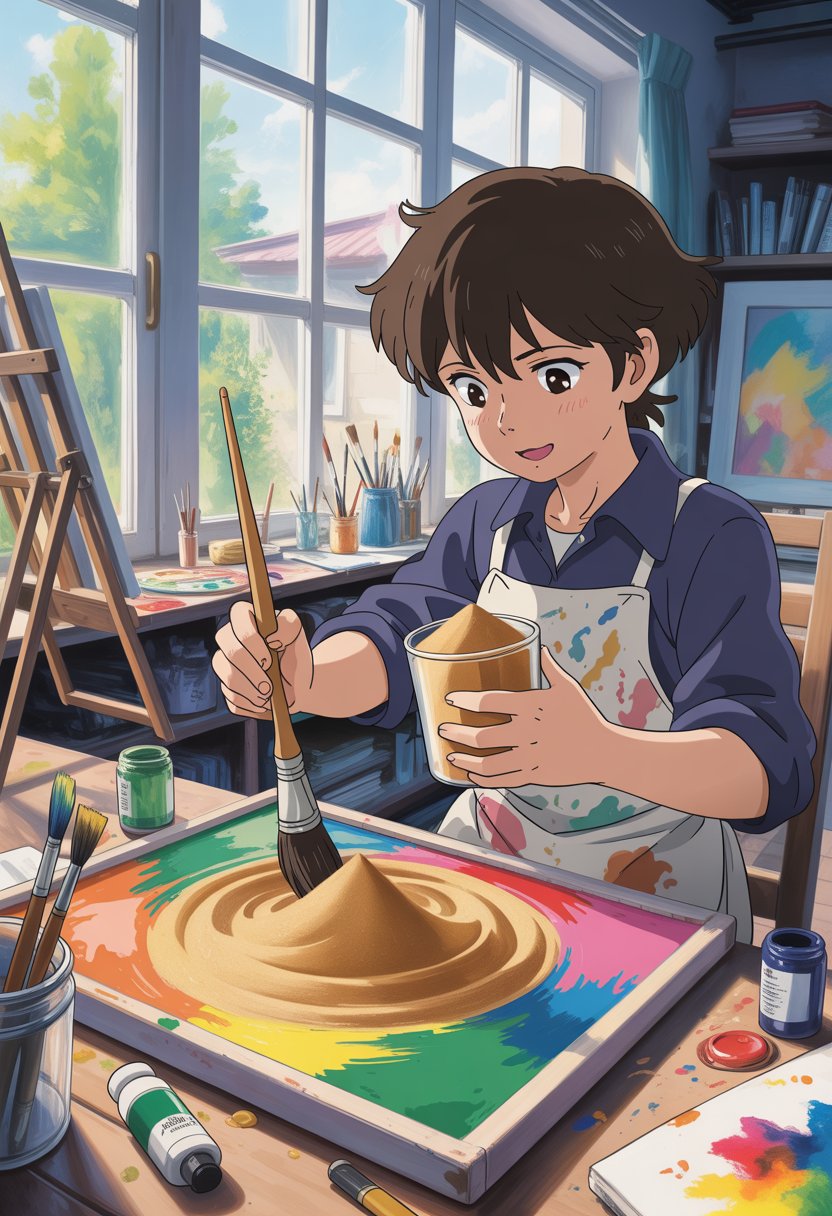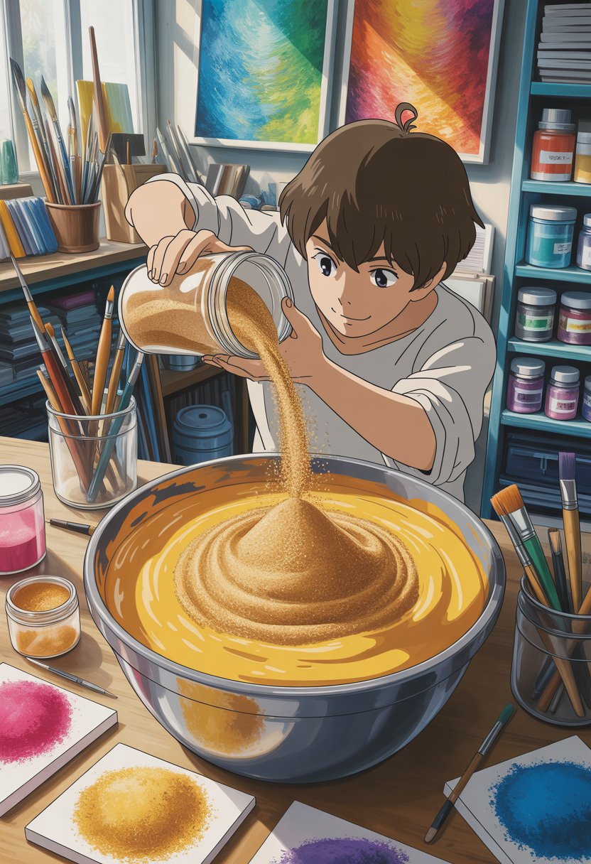 Artists sometimes add sand to acrylics on canvas. The texture gives paintings more depth and plays with light and shadow.
