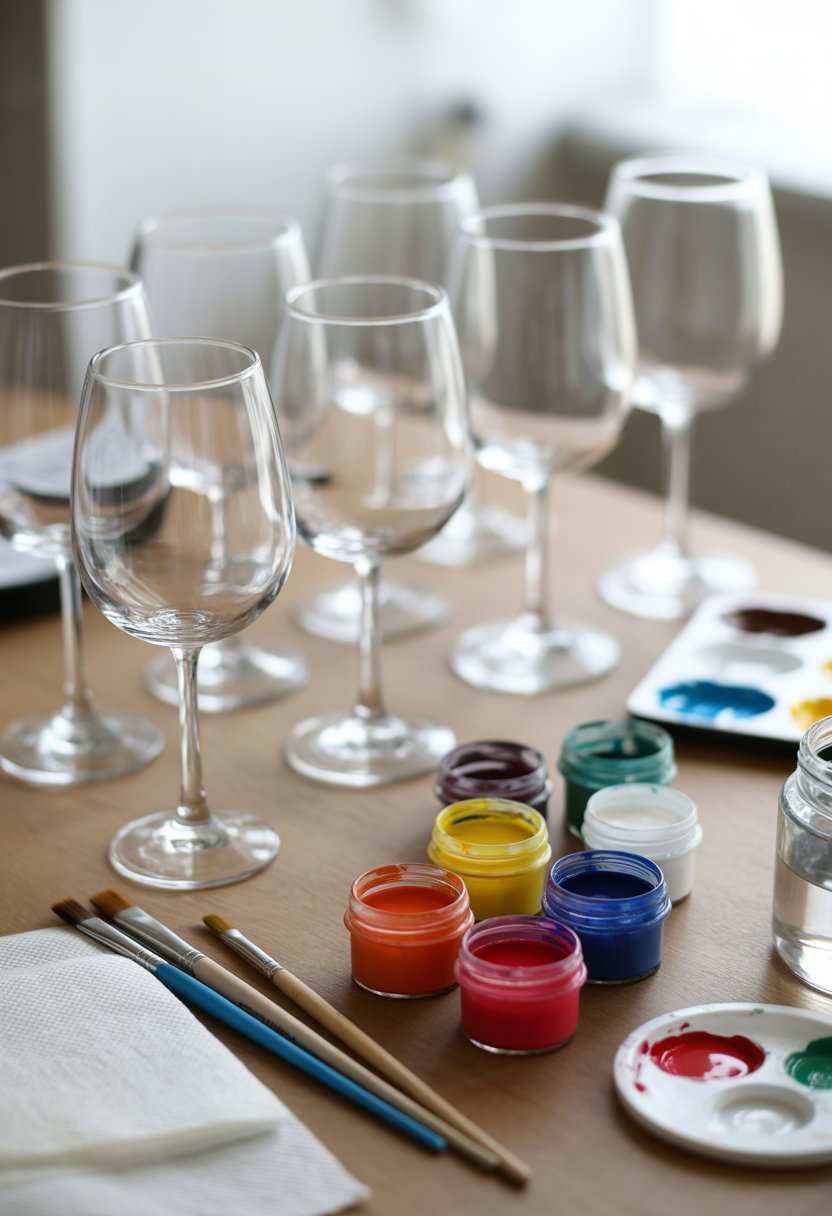 Having the right supplies makes painting wine glasses way easier. You’ll want smooth wine glasses, acrylic paints for glass, and a few good brushes.