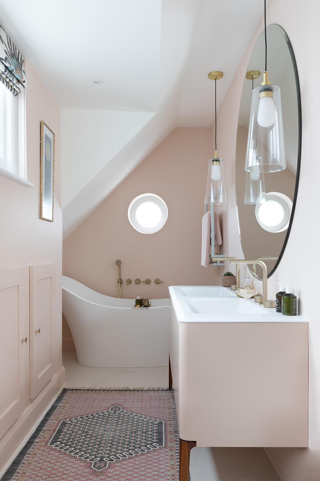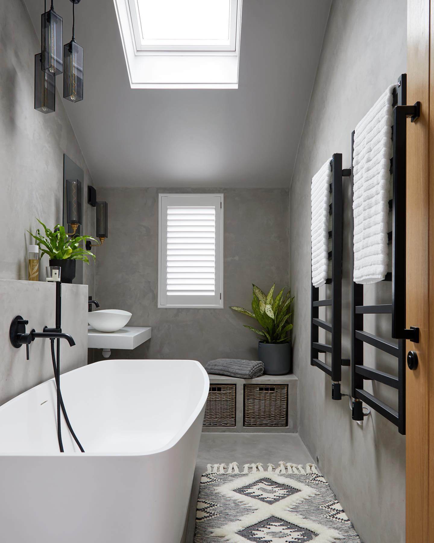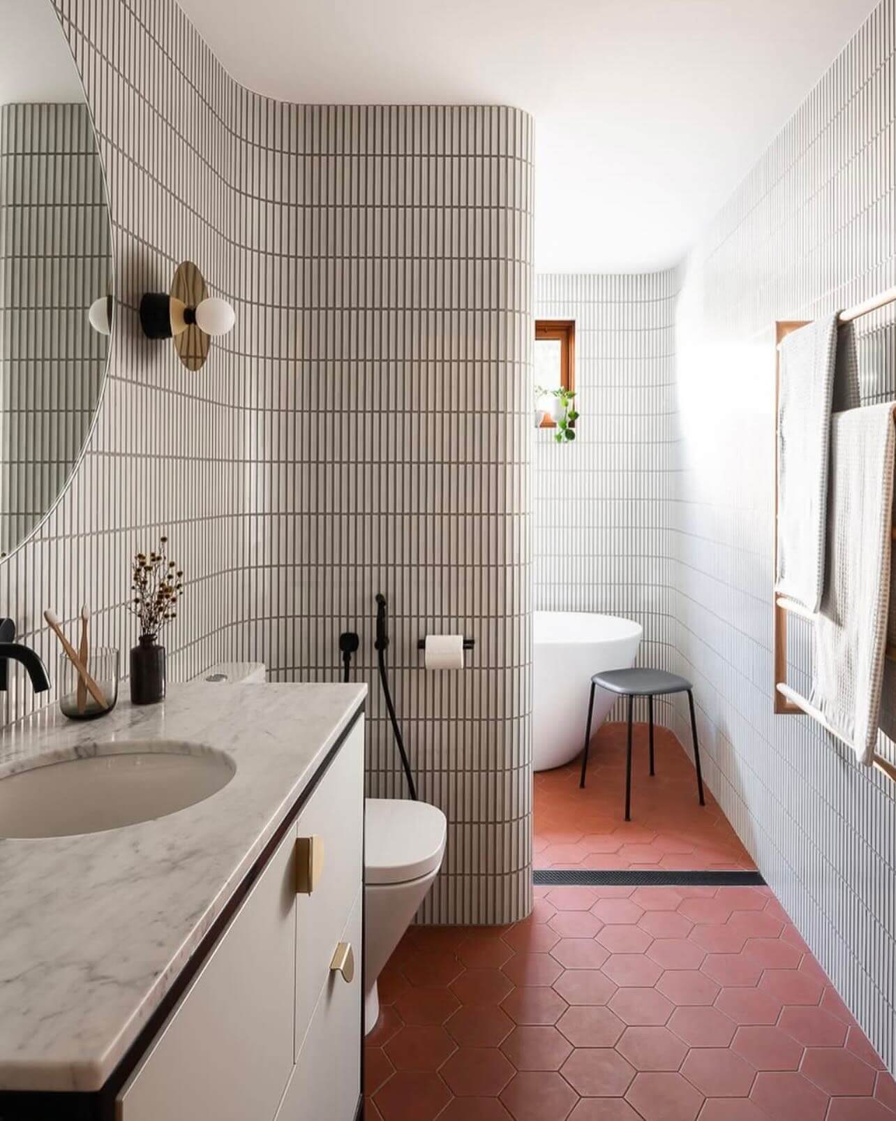 - Use patterned runner rugs with slender stripes aligned lengthwise, visually stretching the floor; select low-pile, washable materials with non-slip backing rated for wet bathrooms.