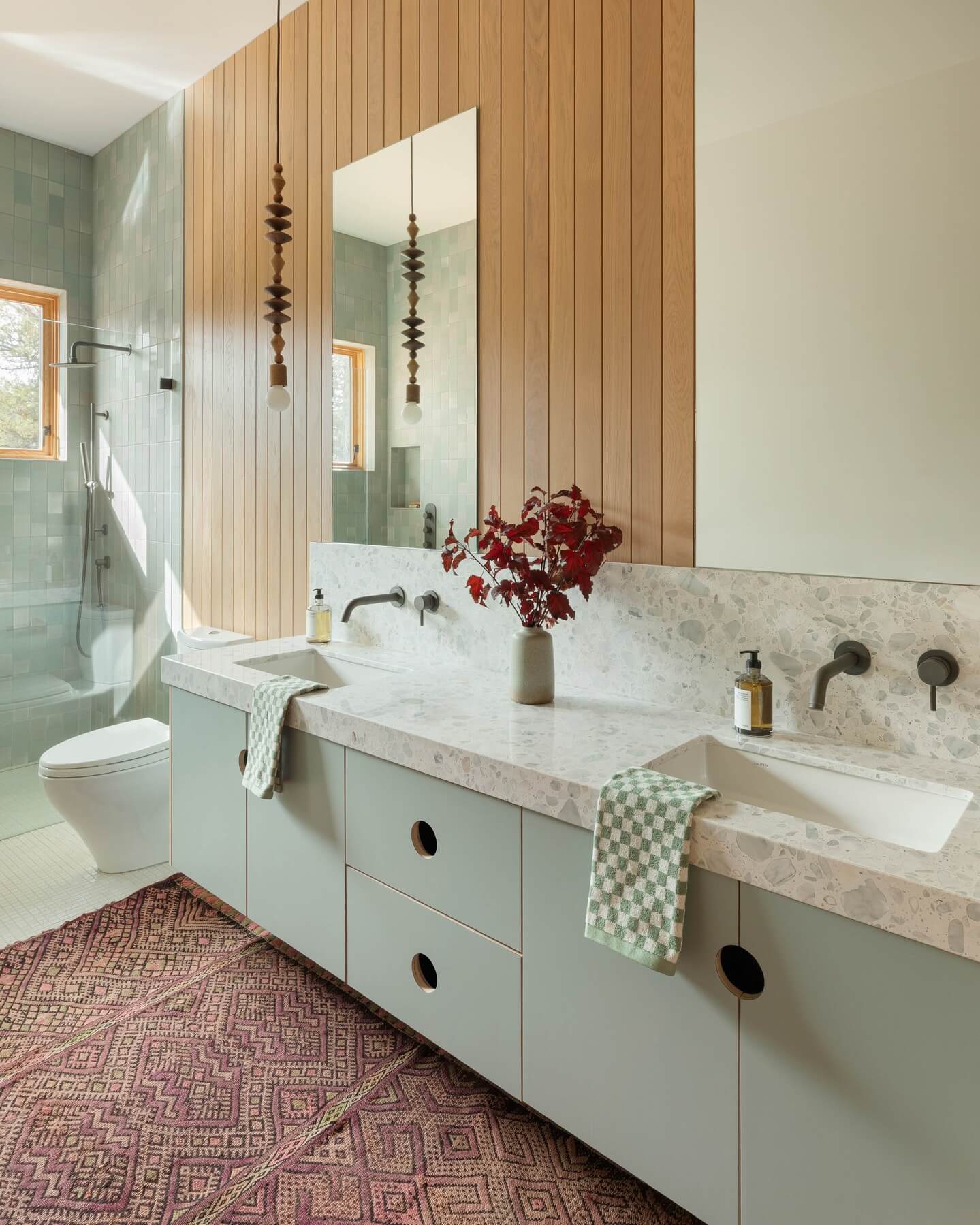 - Float and align: Choose wall-hung toilets and vanities, align reveals and grout lines, and keep toe-kicks open to lengthen sightlines and make narrow bathrooms feel lighter and wider.