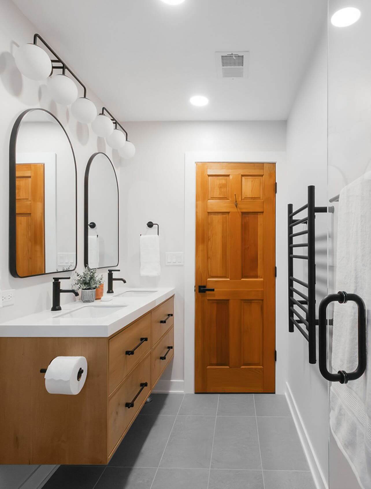 - Pocket or barn door: Swap a swinging door for a pocket or barn door to reclaim crucial clearance, reduce pinch points, and allow cabinetry or towel bars where door arcs once collided.