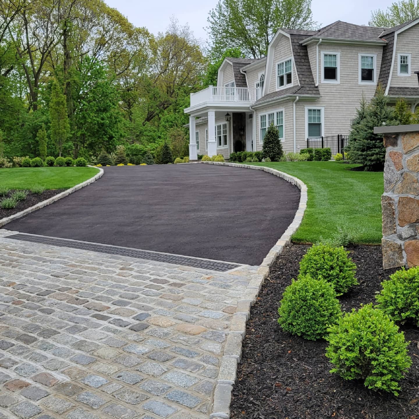 Stone Apron and Asphalt Transition That Signals Quality From the Street