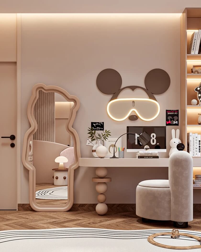 - Art Studio Wardrobe: Built-in wardrobe hides a pull-out easel, washable paint station, and paper rolls, keeping creativity accessible yet contained, with museum lighting to display rotating masterpieces.