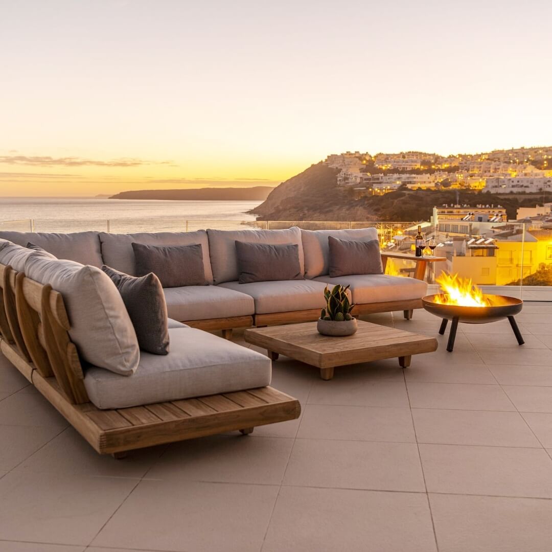 Wind-Smart Rooftop Fire Table Lounge
