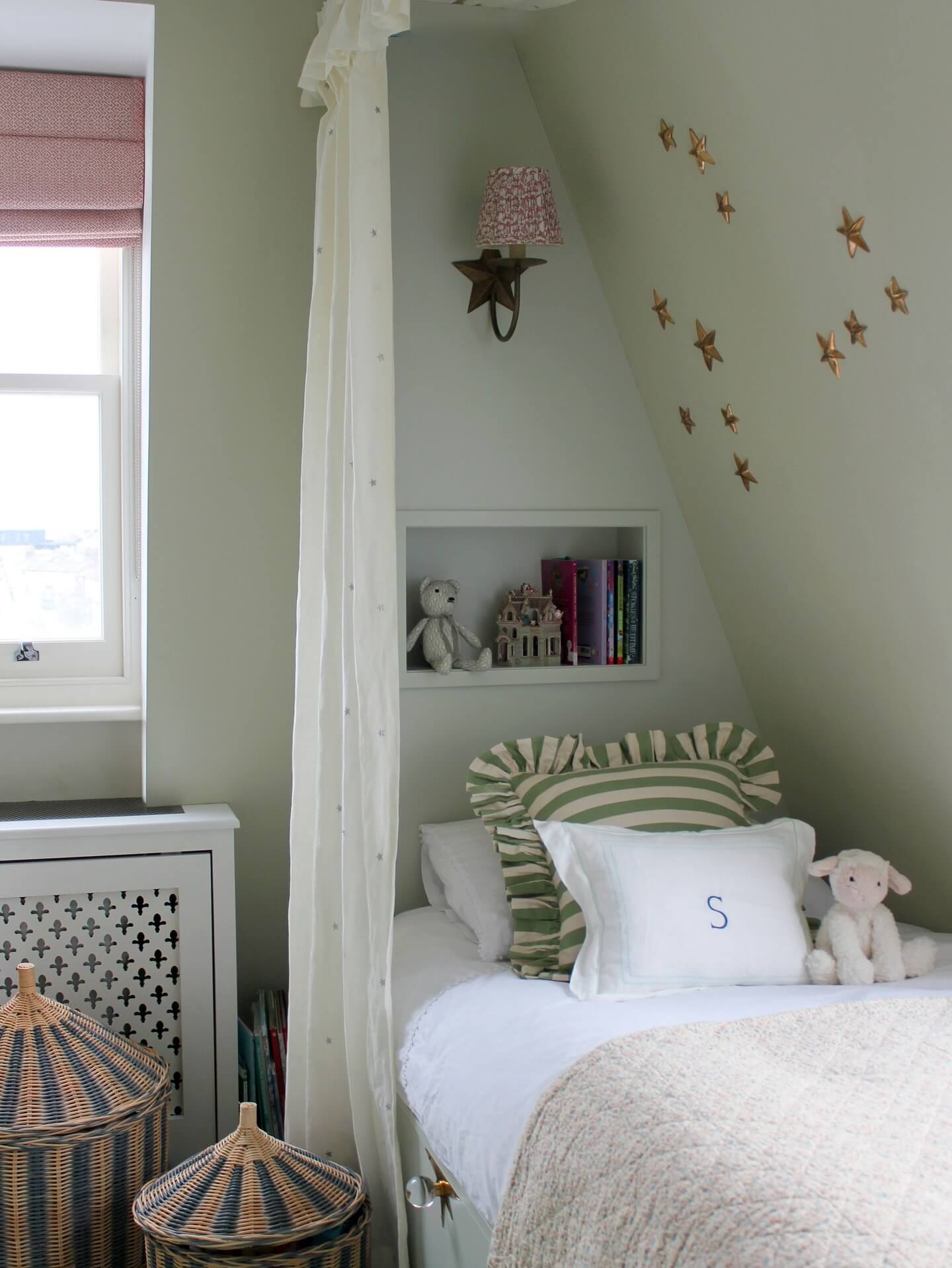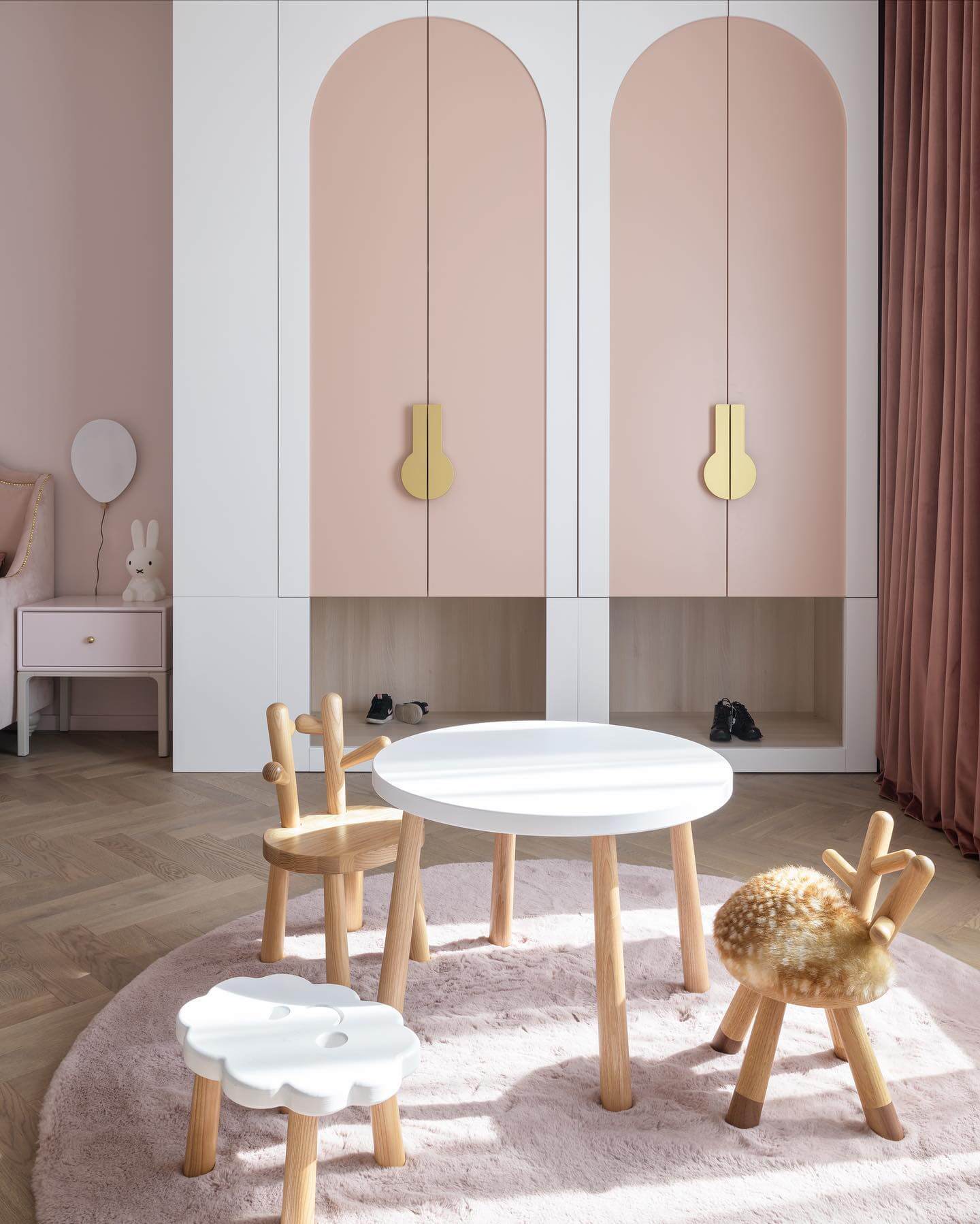 - Opt for a canopy or four-poster bed with rounded finials; add under-bed drawers to hide costumes, seasonal linens, and toys while preserving floor space for play.