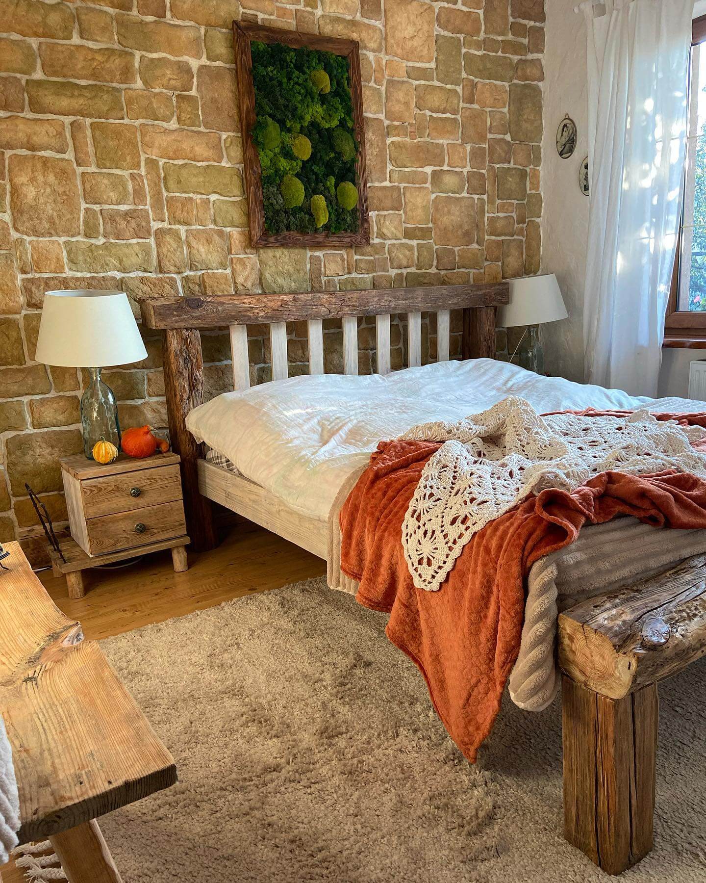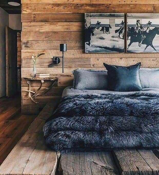 Every cozy, collected rustic bedroom benefits from one hero piece—and a reclaimed wood bed is hard to beat. Opt for a substantial headboard with visible grain, knots, and hand-hewn character to anchor the room and set the palette. If your space is small or light-challenged, choose a lighter wash or oak finish; in larger rooms, a deeper walnut or weathered barnwood adds moody depth. Keep the silhouette simple and timeless so texture, not ornament, does the talking. Pair the bed with quiet bedding in earthy neutrals to let the wood sing, then add a leather or woven bench at the foot for function and balance. If you prefer a modern-rustic look, contrast the wood with streamlined nightstands or an iron canopy frame for architectural presence. Don’t forget scale: a bed that’s too delicate gets lost against layered textiles and chunky rugs; too heavy, and it overwhelms. A reclaimed bed instantly ushers in farmhouse warmth, cabin charm, and that lived-in patina that makes rustic bedroom decor feel both grounded and refined.