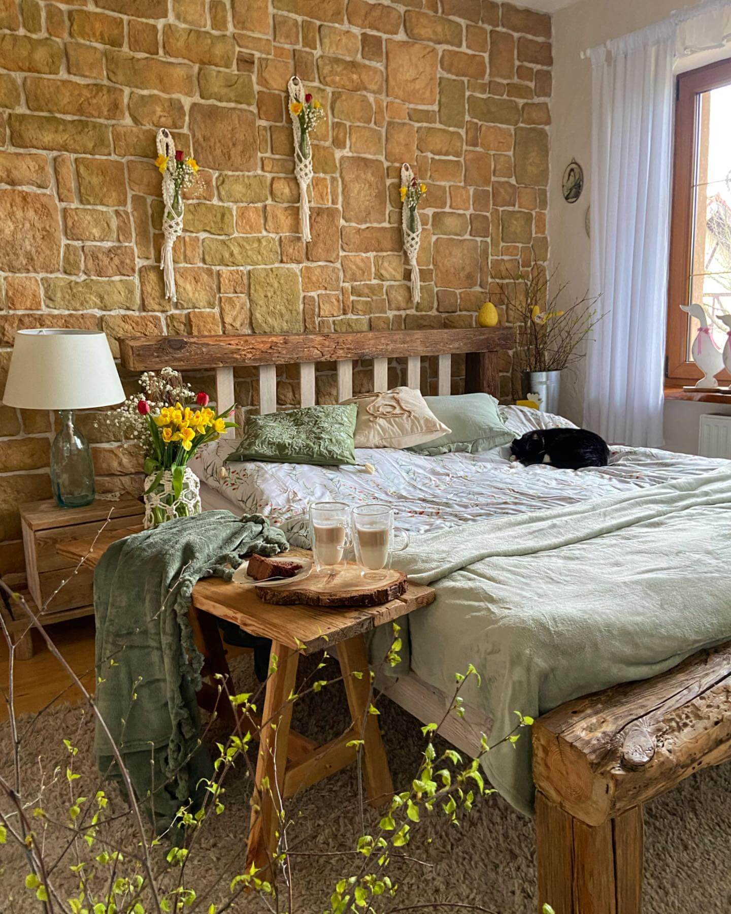 Nature is the soul of rustic style, and a few well-placed botanicals make your bedroom feel alive without tipping into clutter. Think sculptural branches in a stoneware jug, a petite olive or ficus tree in a handled basket, or a bundle of dried wheat or eucalyptus for subtle movement and scent. Keep arrangements simple and oversized rather than fussy—one thoughtful statement per surface. Choose earthen vessels with sand, terracotta, or charcoal glazes to echo your rug and headboard. If maintenance is a concern, dried stems and preserved greens keep the mood organic with zero fuss. Tuck a small bud vase on the nightstand, let a larger floor vessel anchor a corner, and echo those earthy tones in nearby textiles for cohesion. The palette stays calm, the textures do the talking, and your space breathes like a woodland retreat.