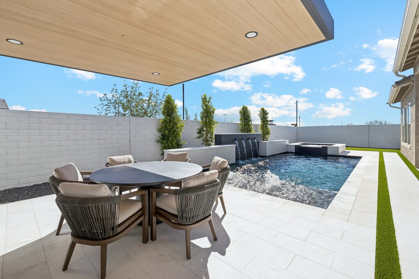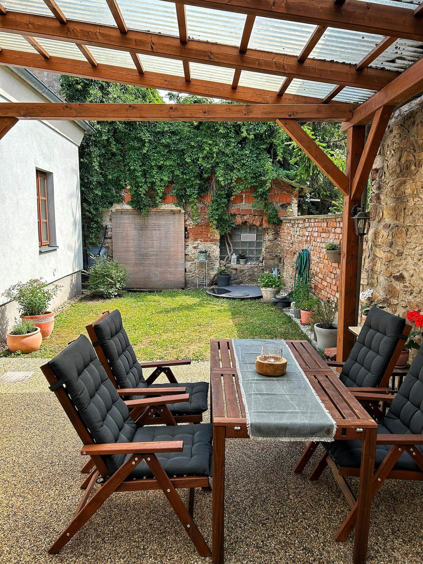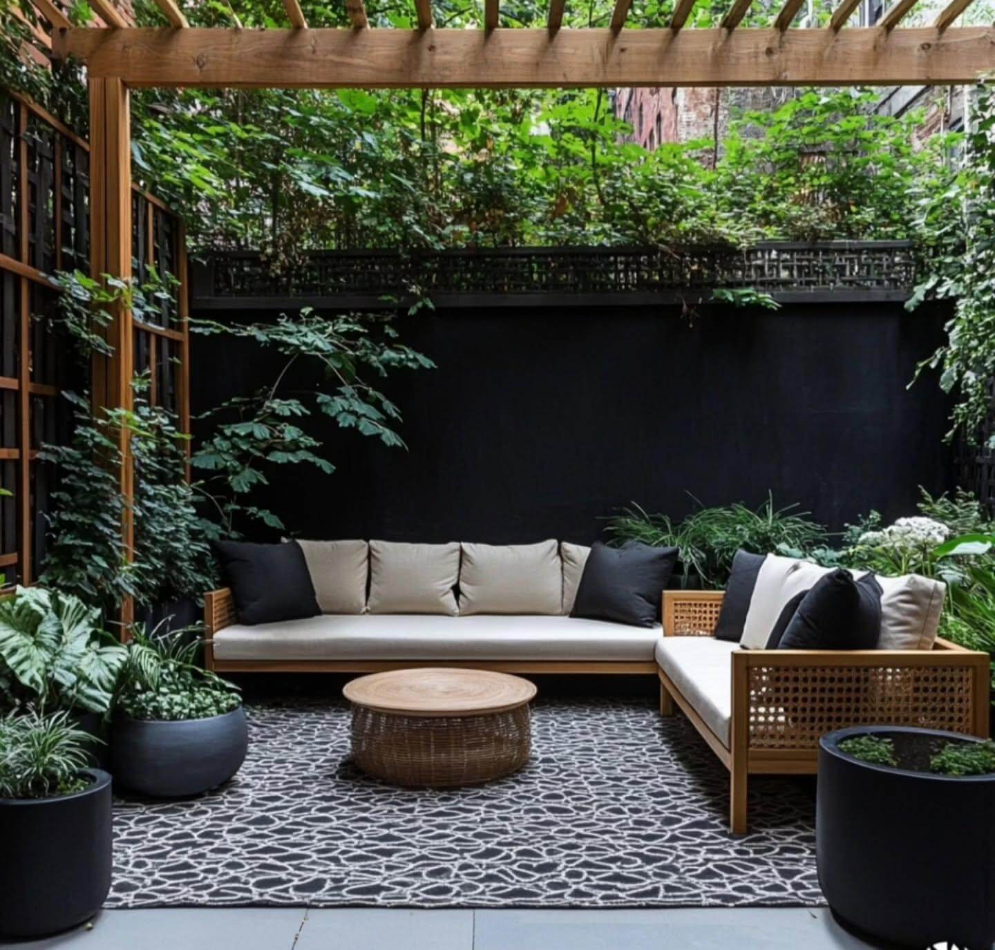- Slim Pergola with Retractable Shade: Use a narrow-profile pergola and washable fabric panels to temper midday sun, define the patio, and add height without casting heavy shadows or overwhelming small footprints.