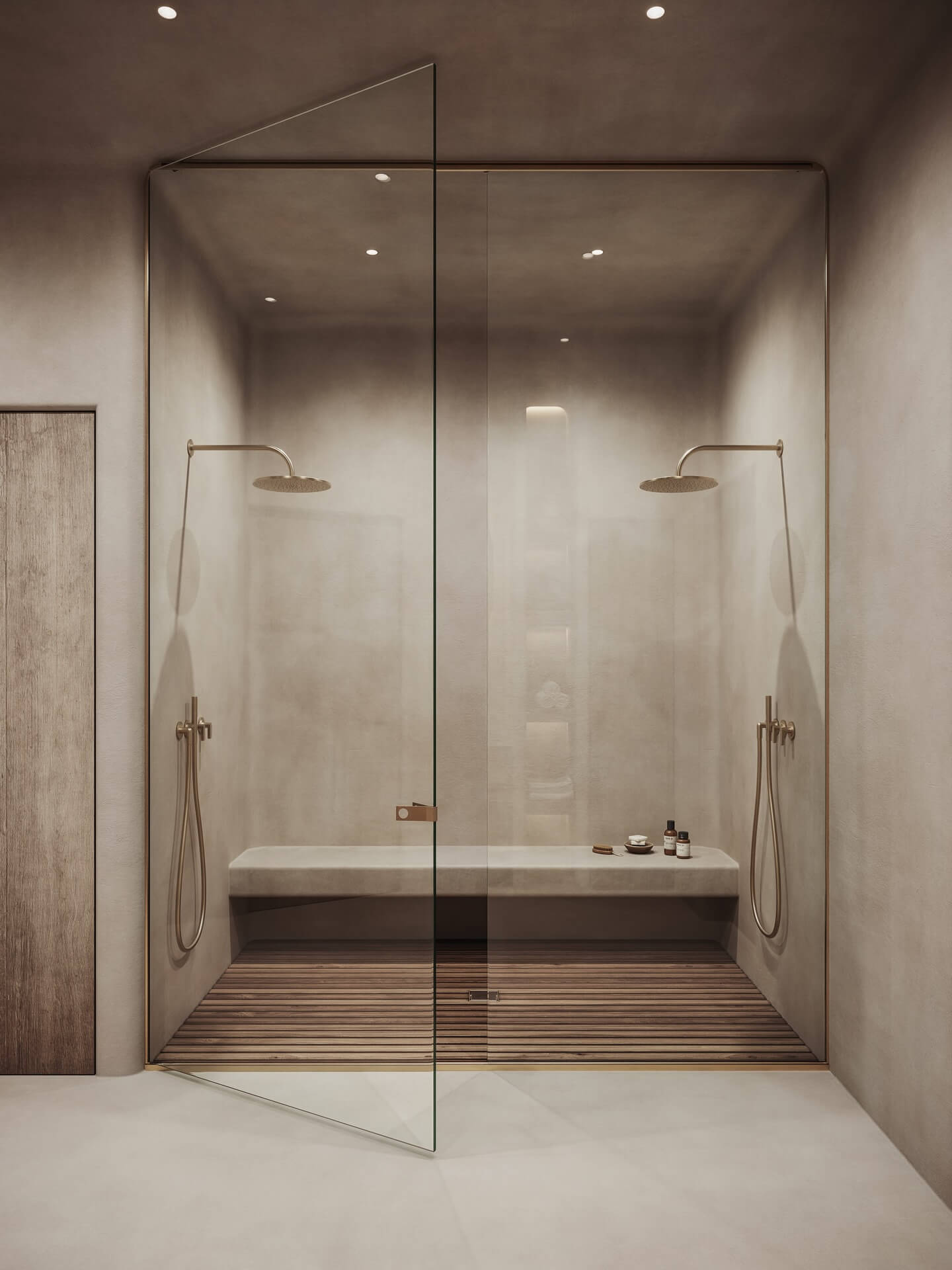 Quiet Bath Sanctuary: Stone, Stucco, and Steam