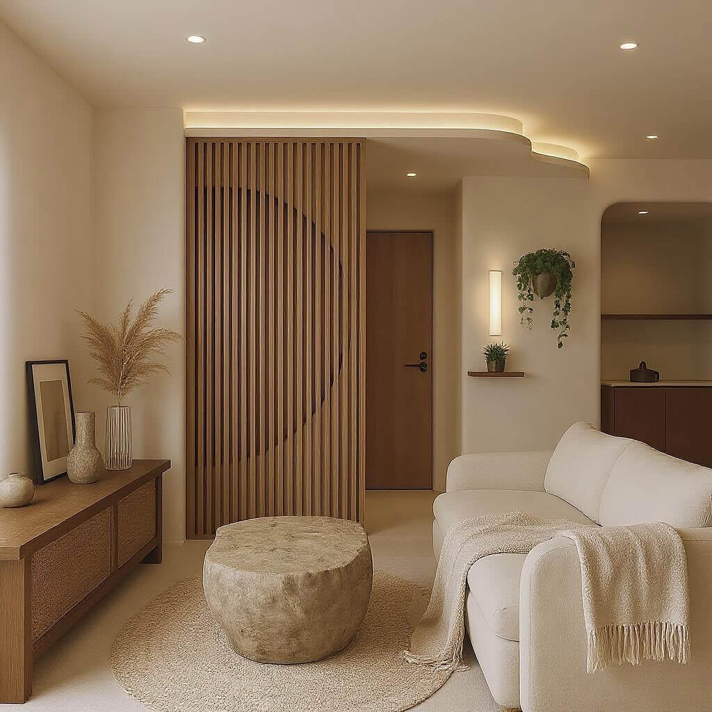 - Paper and rice screens: Shoji or washi panels filter sunlight into milky planes, blur edges, and slide silently, creating flexible zones without closing off air flow or human connection.