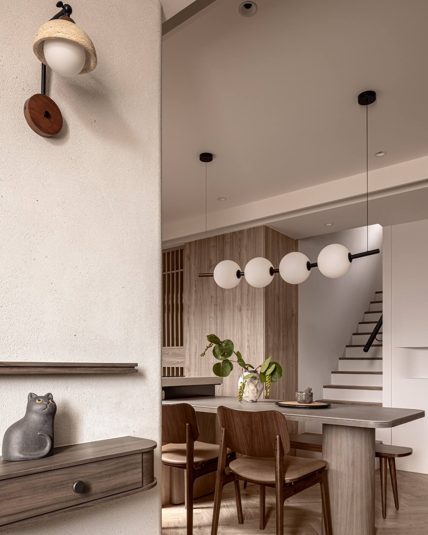 Make the dining table the heart of your wabi-sabi home—sturdy, imperfect, and ready to record a life well-lived. Choose solid wood with a matte oil finish so scratches and water rings can be buffed or simply absorbed into the patina. Celebrate the knots and grain as natural ornament. Keep styling spare: a washed-linen runner, a cluster of handmade bowls, beeswax candles that drip at their own pace. Mix seating without fuss—an old bench on one side, two chairs on the other—so the ensemble feels collected rather than purchased. Encourage the everyday: a bowl of seasonal fruit, a vase with a crooked branch, bread torn by hand. Candlelight and warm, low lighting flatter worn surfaces and faces alike, turning meals into slow, generous gatherings. Maintenance is simple: wipe with a damp cloth, re-oil as needed, and let the tabletop tell its story. When furniture invites use instead of fear, eating becomes a ritual of presence—cracks, spills, laughter, and all.