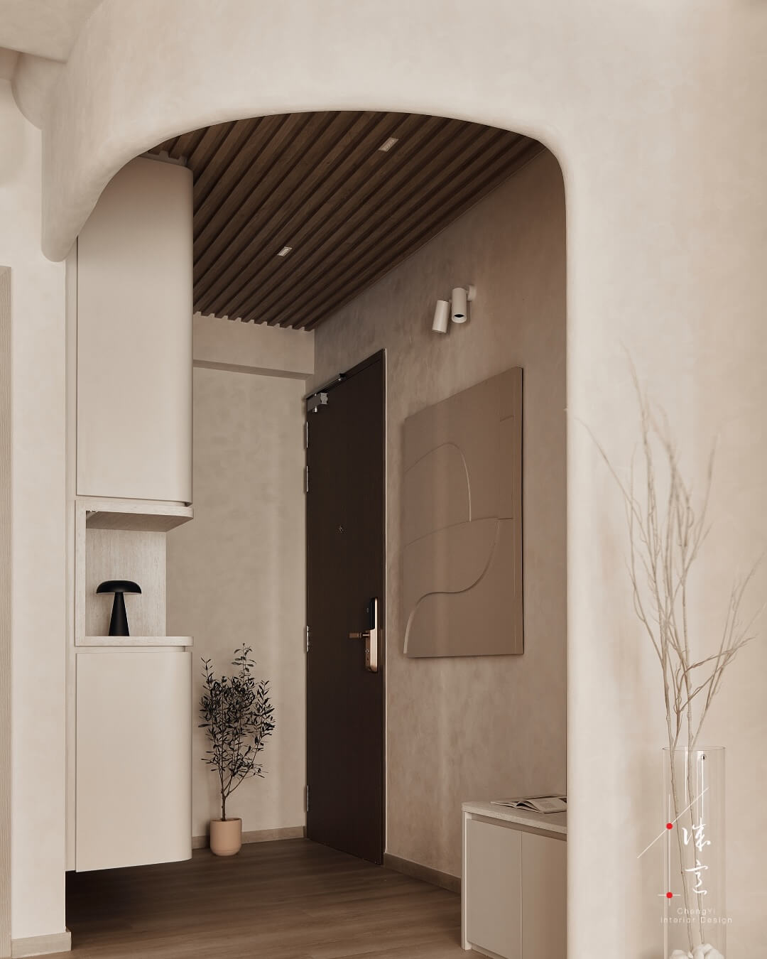 A wabi-sabi home begins at the threshold. Borrow the spirit of the Japanese genkan to design an entry that invites you to pause, shed the outside, and arrive. Keep it small and purposeful: a sturdy shoe bench, a natural-fiber mat, a shallow stone or clay tray for keys, and a single branch in a humble vase. Hooks and baskets in wood or rattan handle coats and scarves without visual clutter, while a soft, indirect sconce pools warm light to calm the senses. Establish ritual: shoes off, bag down, deep breath. Consider a low stool for tying laces and a bowl of cedar blocks to add a faint, resinous scent. Embrace durable, honest materials underfoot—sealed concrete, slate, or weathered wood that can welcome rain and dirt with dignity. Edit surface décor relentlessly so negative space does the talking. This micro-zone becomes your daily reset, setting the tone for slower movement, mindful tidiness, and the useful beauty that continues through the kitchen and living room. In the simplest way, the entry teaches wabi-sabi’s essential lesson: less noise, more presence.